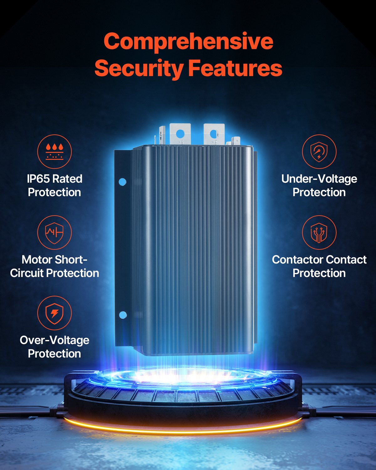 - All-Around Protection: This golf cart controller features built-in motor short-circuit, over-voltage, under-voltage, contactor contact, and temperature protections. IP65 waterproof is suitable for harsh weather and challenging environments, ensuring secure and reliable operation