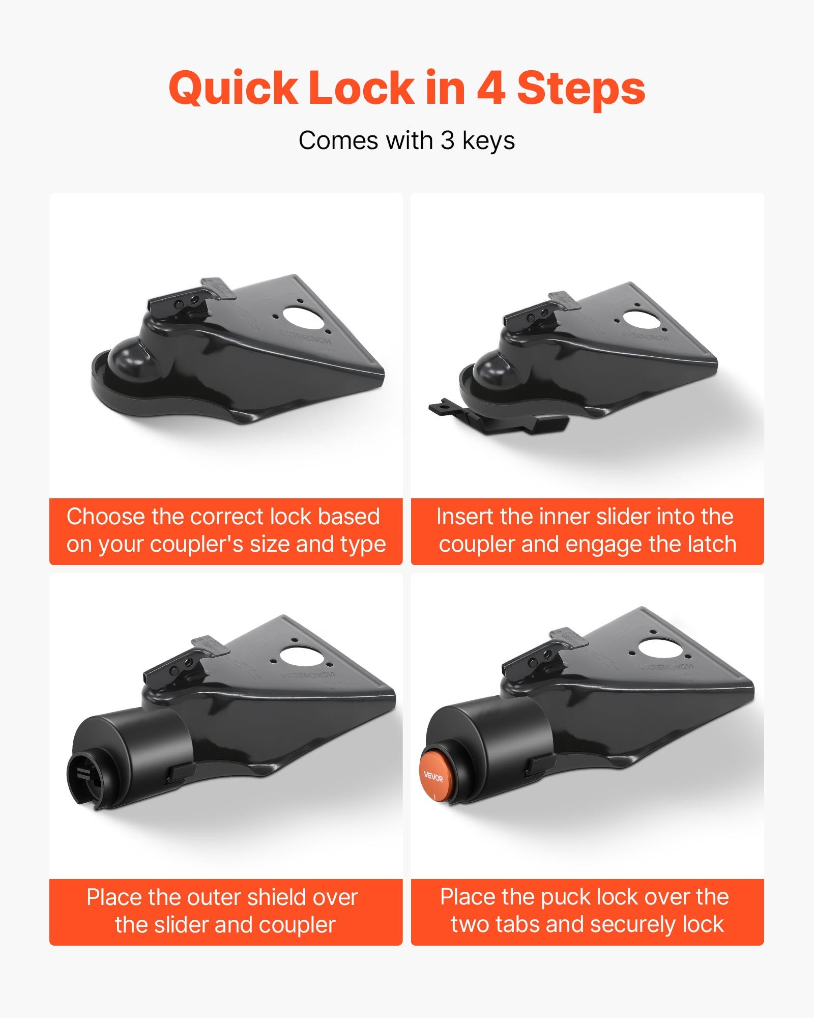 - Quick & Easy Locking: Locking up takes less than 30 seconds! Simply unlock, place on the coupler, and secure. One-handed installation and an internal cushion pad ensure a tight, stable fit. Comes with 3 keys for your convenience