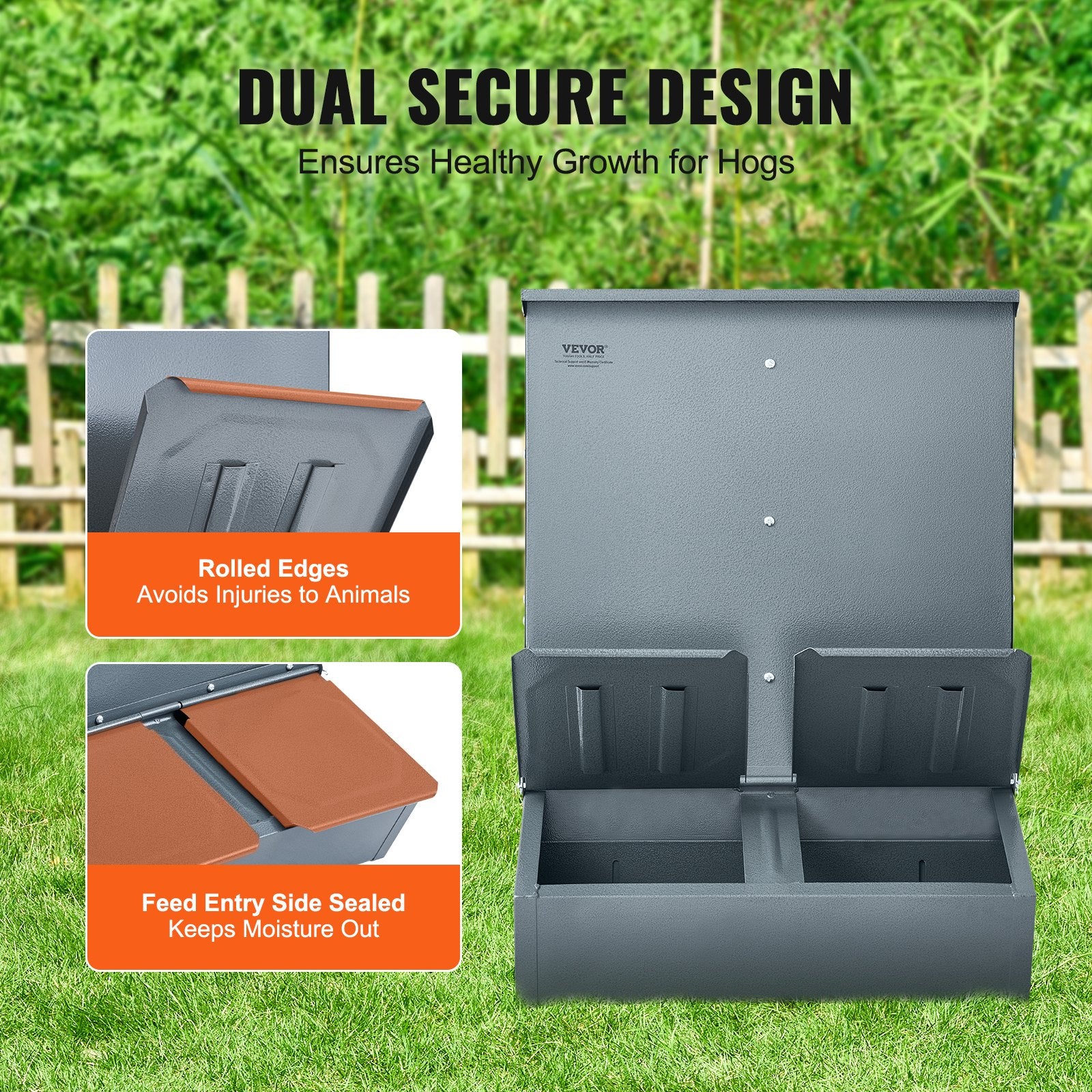 Hog Feeder, 3.7 Bushel Capacity, Double Door Pig Feeder, Heavy Duty Steel Piglets Feeder, Multipurpose Trough Creep Feeder, Outdoor Livestock Feeder Farm Accessory for Feeding up to 8 Hogs