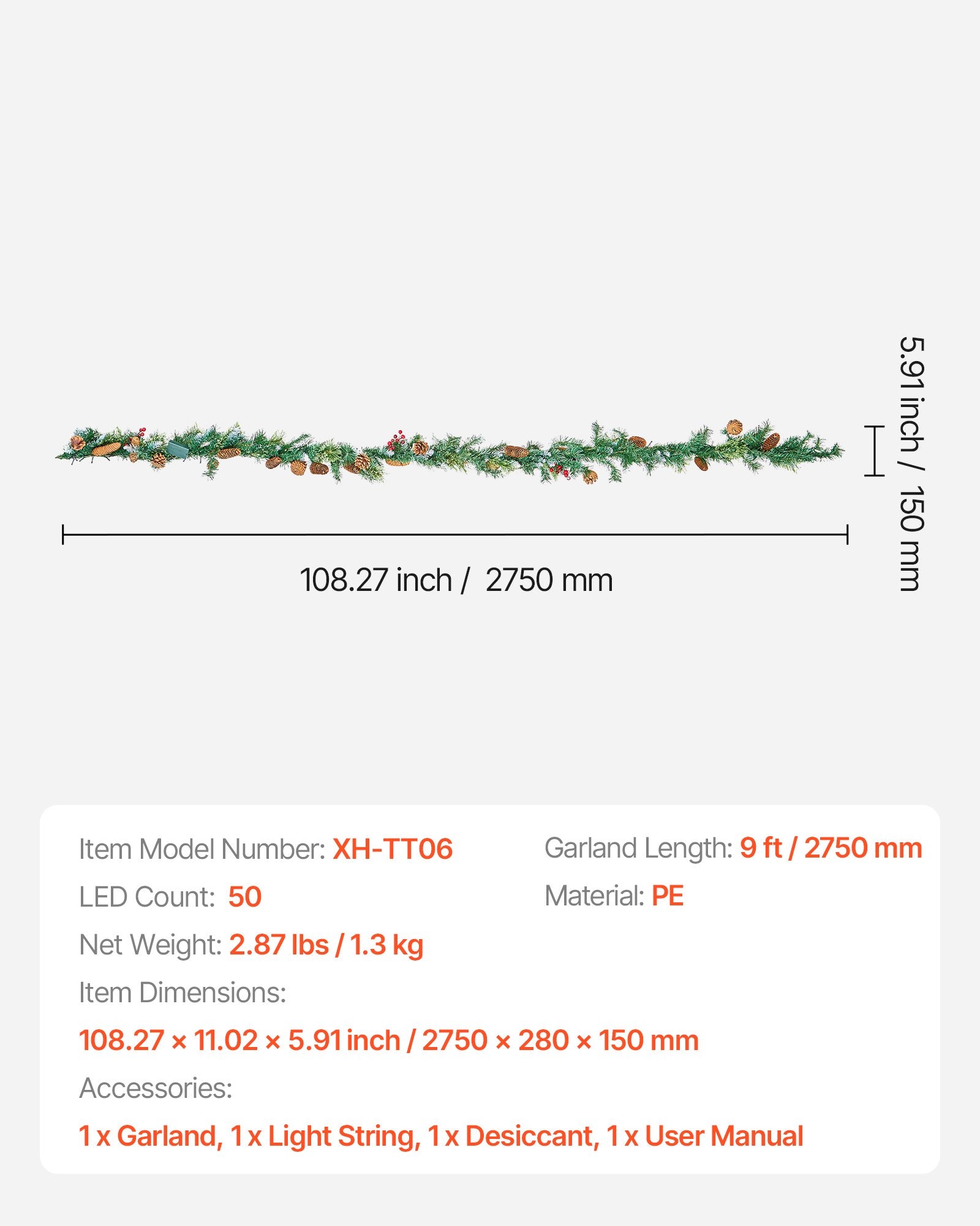 - Size & Design: This 9-foot Christmas garland features a realistic mix of pine needles, 4 round pine cones, 9 long pine cones, and 4 berry clusters, creating a full, lifelike look that brings the beauty of nature into your home