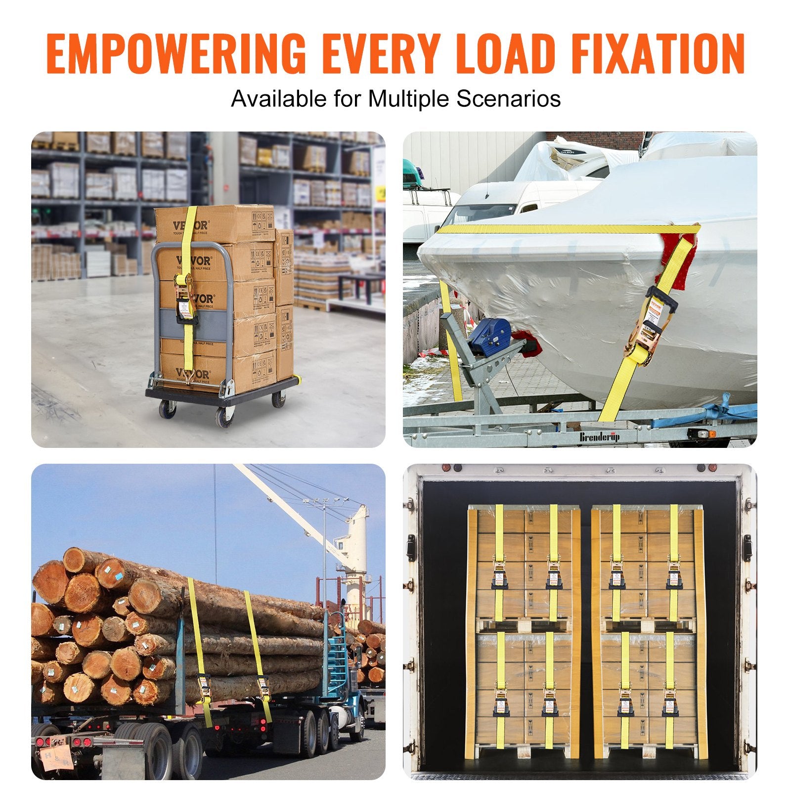 - Versatile Application: VEVOR ratchet straps provide durable and reliable security for transporting various small and large objects, including motorcycles, canoes, kayaks, ATVs, boxes, boats, furniture, lawn equipment, heavy machinery, and other cargo via truck beds, trailers, or roof racks.