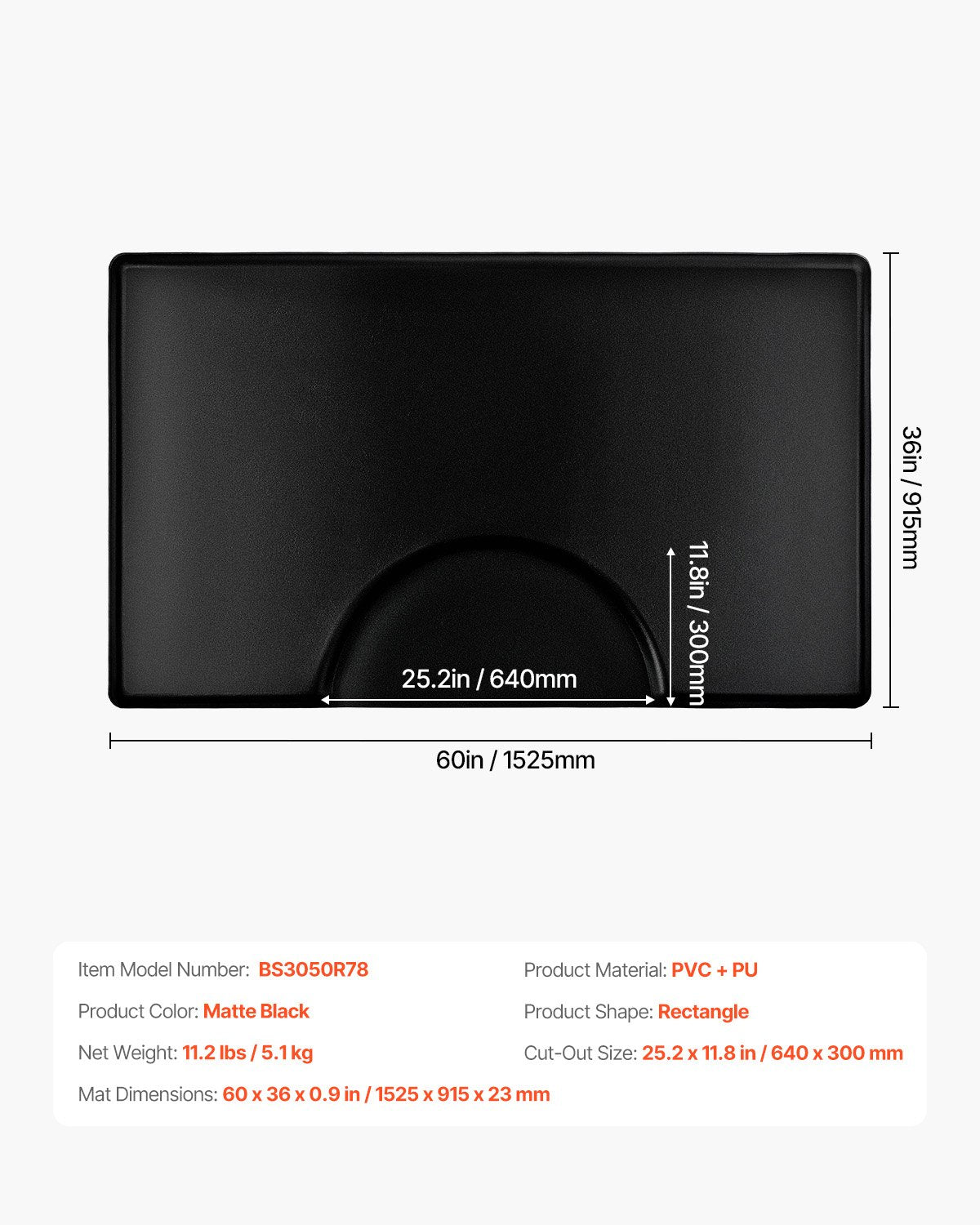 - Large Size: Our 1525 x 915 mm rectangle salon mat for hair stylists offers a spacious standing area, allowing barbers to move freely and work more efficiently. The 25.2" x 11.8" (640 x 300 mm) cut-out fits most salon chairs with a round base, staying securely in place without shifting