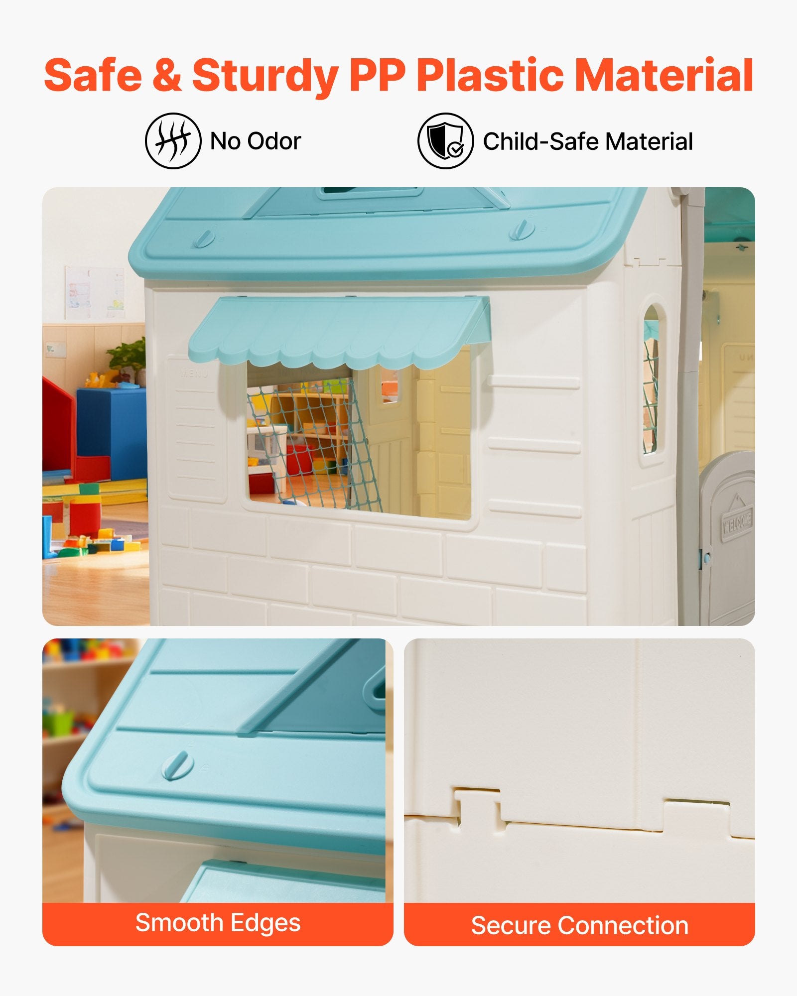 - Quick Setup: This VEVOR indoor outdoor cottage play house comes with a modular design, where major components slot together and screws provide extra stability. Adults can assemble it swiftly, providing a ready-to-play space that sparks creativity and active fun for children