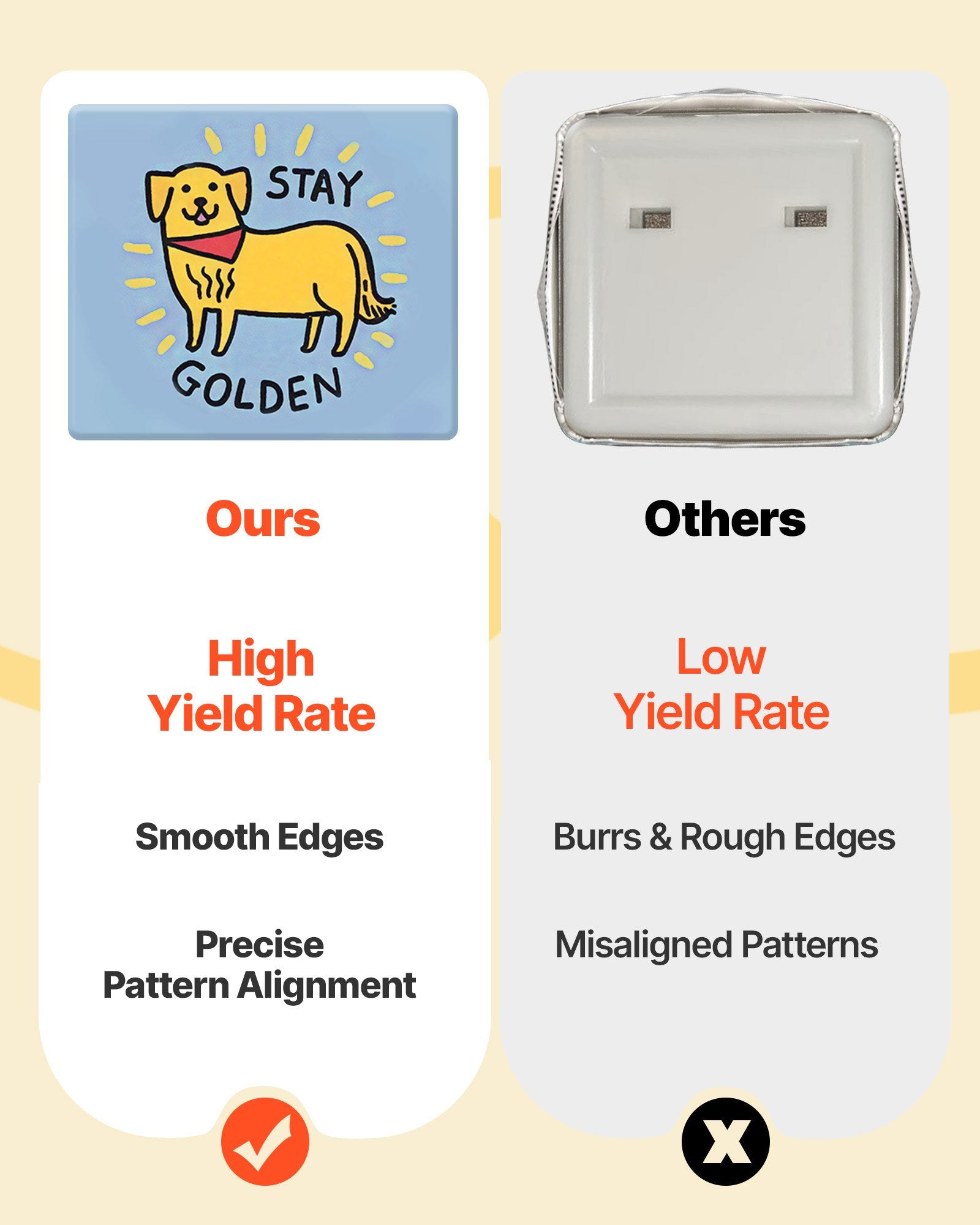 - High Success Rate: Precision molds and alignment guides help avoid tilted designs, ensuring ideal outcomes every time. It is recommended to use 127-157g paper (135g performs especially well). Avoid mold shifting while using the button maker machine