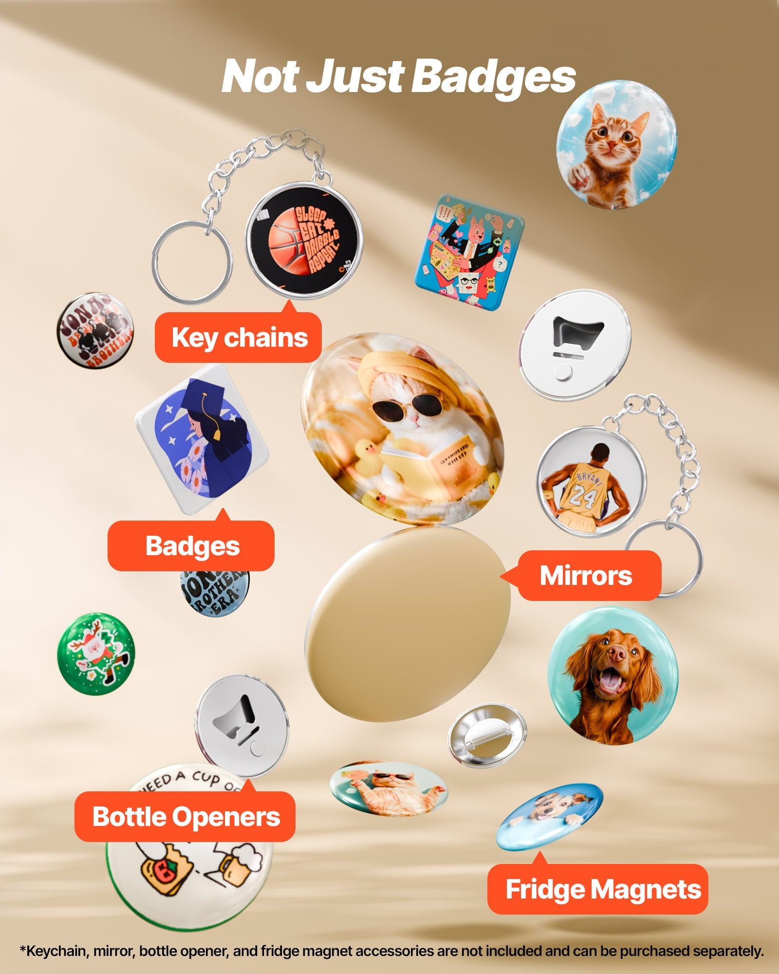 - Make Personalized Gifts: Design custom badges for any occasion. Our button making machine also works with mirrors, keychains, bottle openers, and magnets—turn your creativity into one-of-a-kind, heartfelt keepsakes