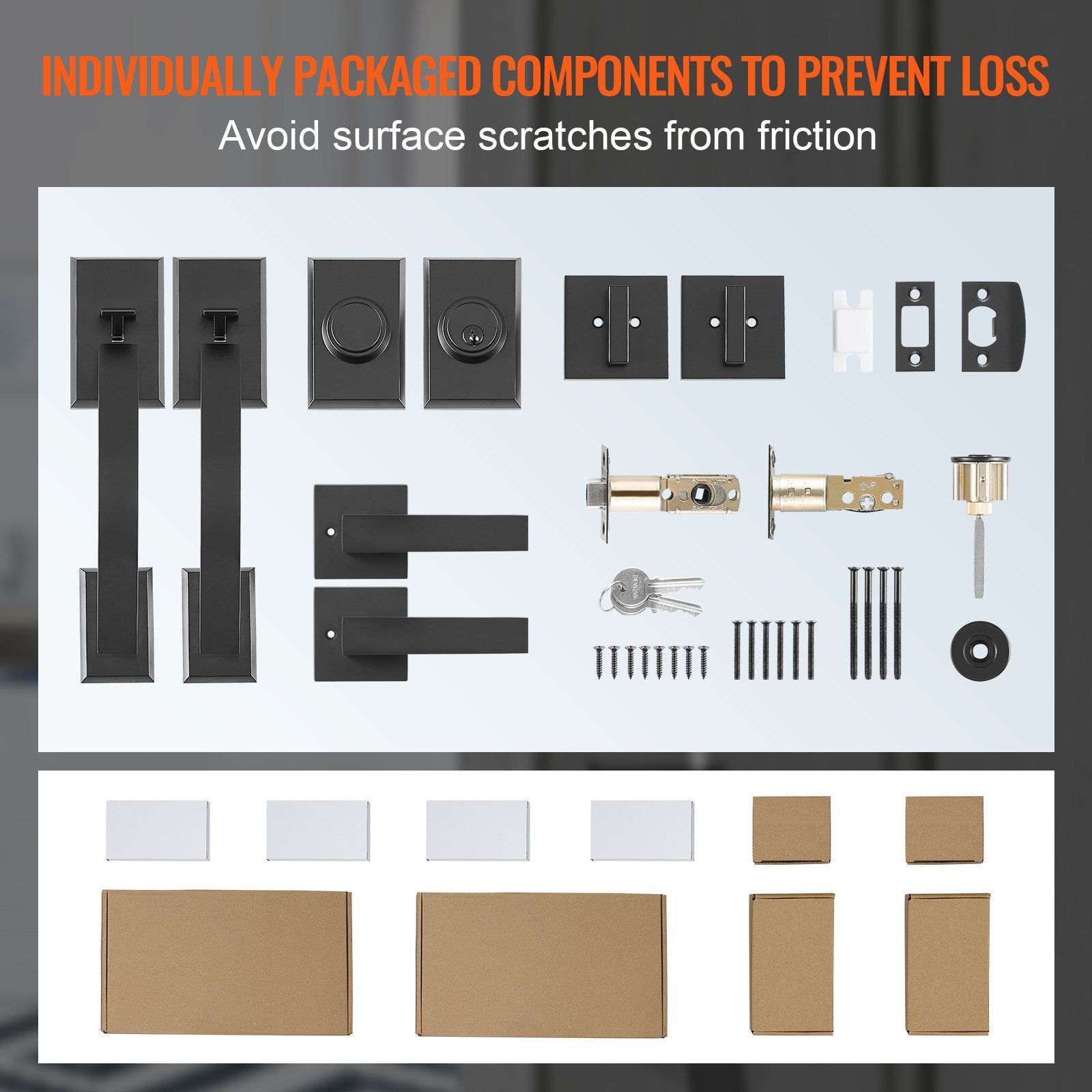 - Individually Packaged Components: Each component of the French door lock set is meticulously packaged to prevent loss and minimize the risk of surface scratches due to friction, preserving the overall aesthetic appeal.