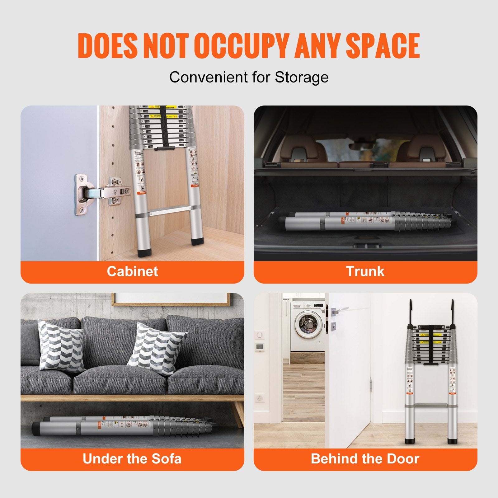 - Convenient Storage: The foldable telescopic ladder is lightweight and compact, making it easy for female users to carry. You can place it almost anywhere, including under the sofa, behind doors, or in the car trunk. It is more portable and space-saving than traditional ladders.