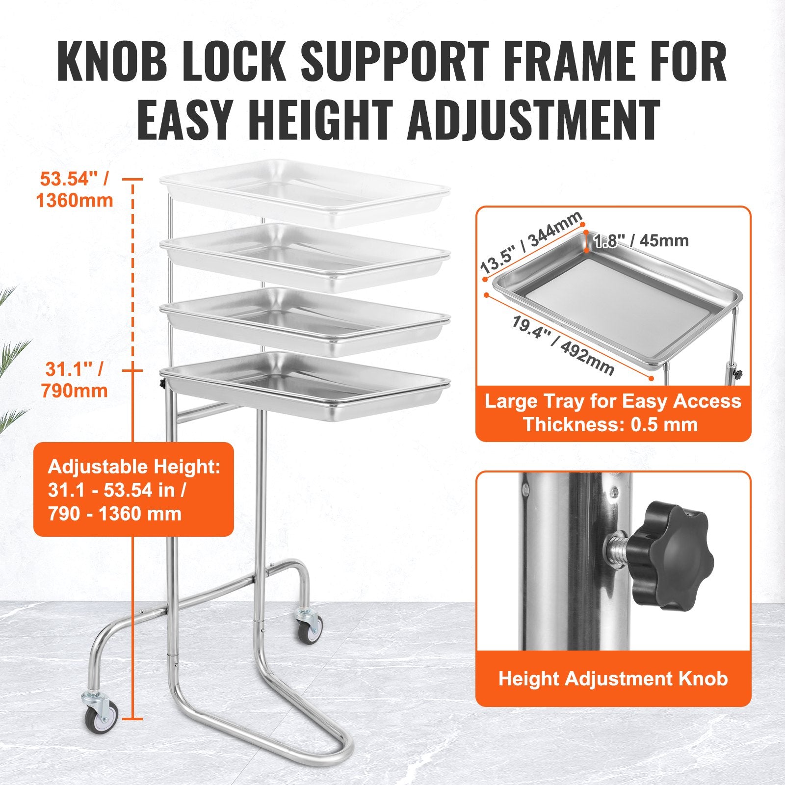 Stainless Steel Lab Carts, Lab Utility Cart with Single Tray, Mobile Medical Cart with 2 Silent Wheels, Lab Rolling Cart for Lab, Clinic, Hospital, Salon