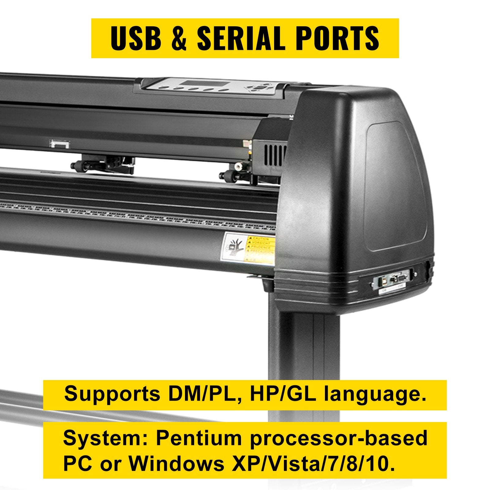 - High Compatibility: The vinyl printer is available with COMPIM and USB interface for easier connection, supporting DM/PL and HP/GL language, Pentium processor-based PC or Windows. Adopts D-typed motherboard and high-speed cache memory. 2 double-spring pinch rollers and aluminum knurling stick ensure that the paper feed will not deviate by long distance.
