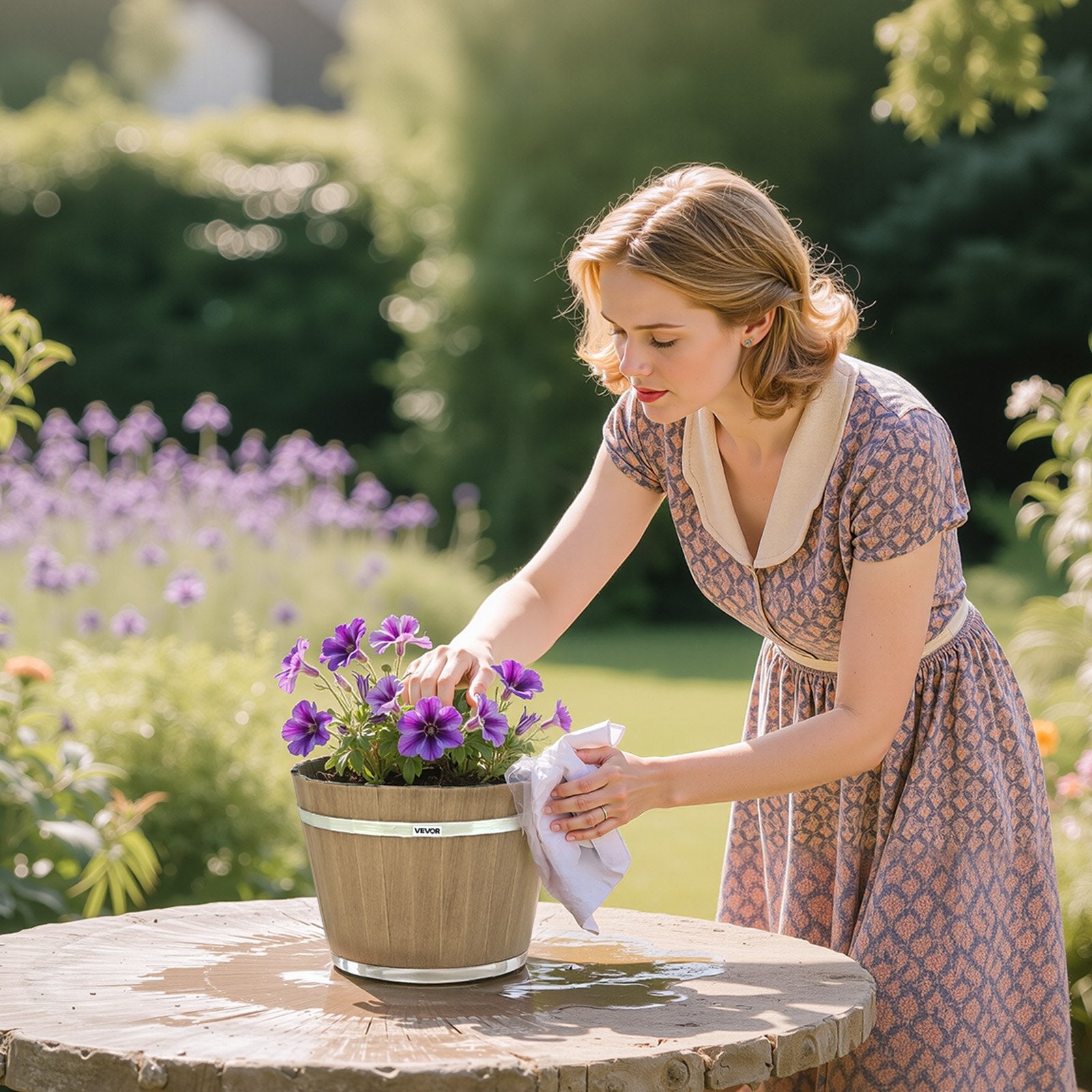 - Rustic Barrel-Style Look: Our plant pot features a vintage wood-grain barrel design that brings a natural, rustic charm. Whether placed on your balcony, porch, or living room, it blends beautifully into any decor and adds a warm, green touch