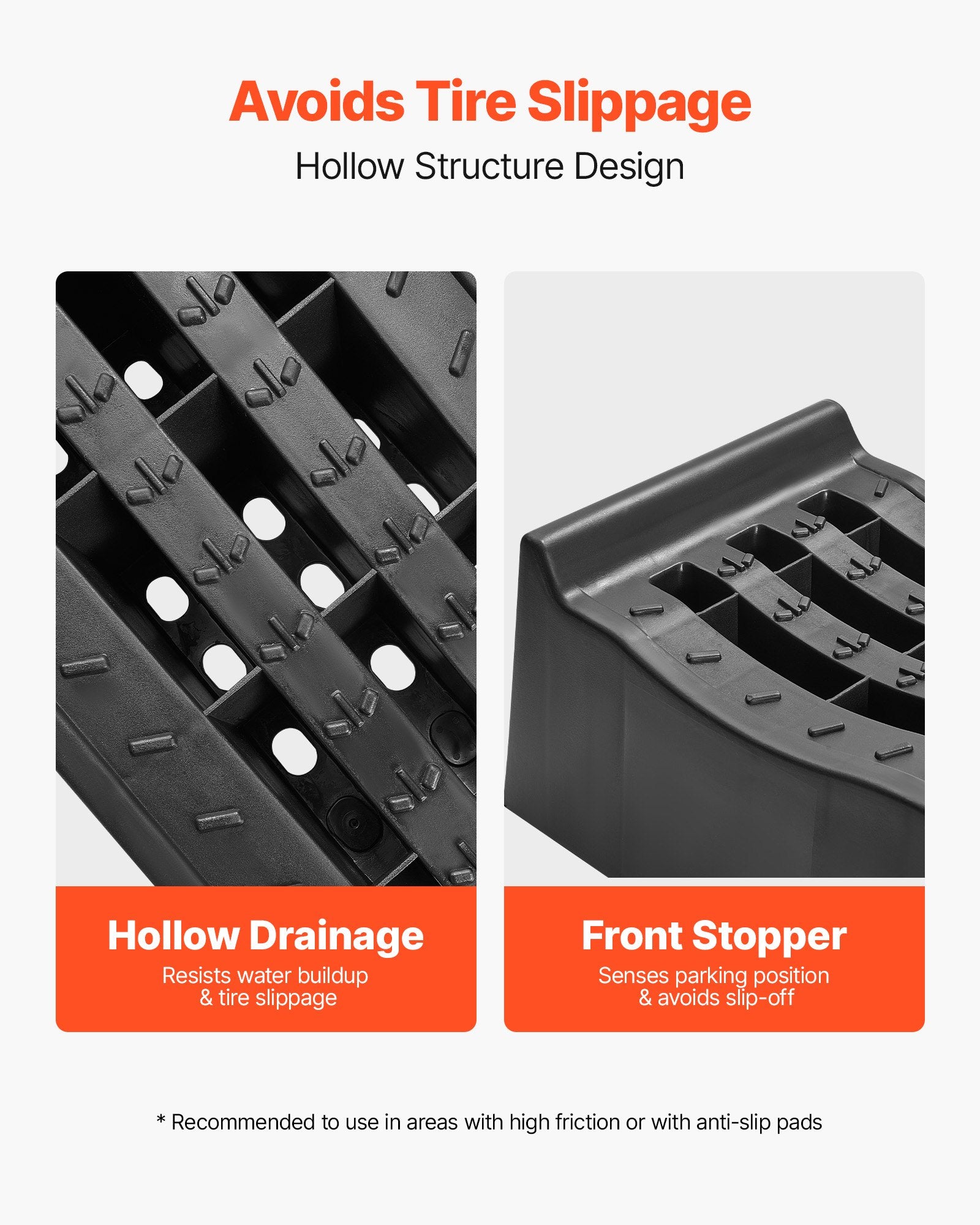 - Special Design: Our oil change ramps feature a honeycombed surface to increase friction and improve drainage, which reduces dampness buildup and tire slippage. The curved shape fits the tire securely, keeping the vehicle stable and fixed in place