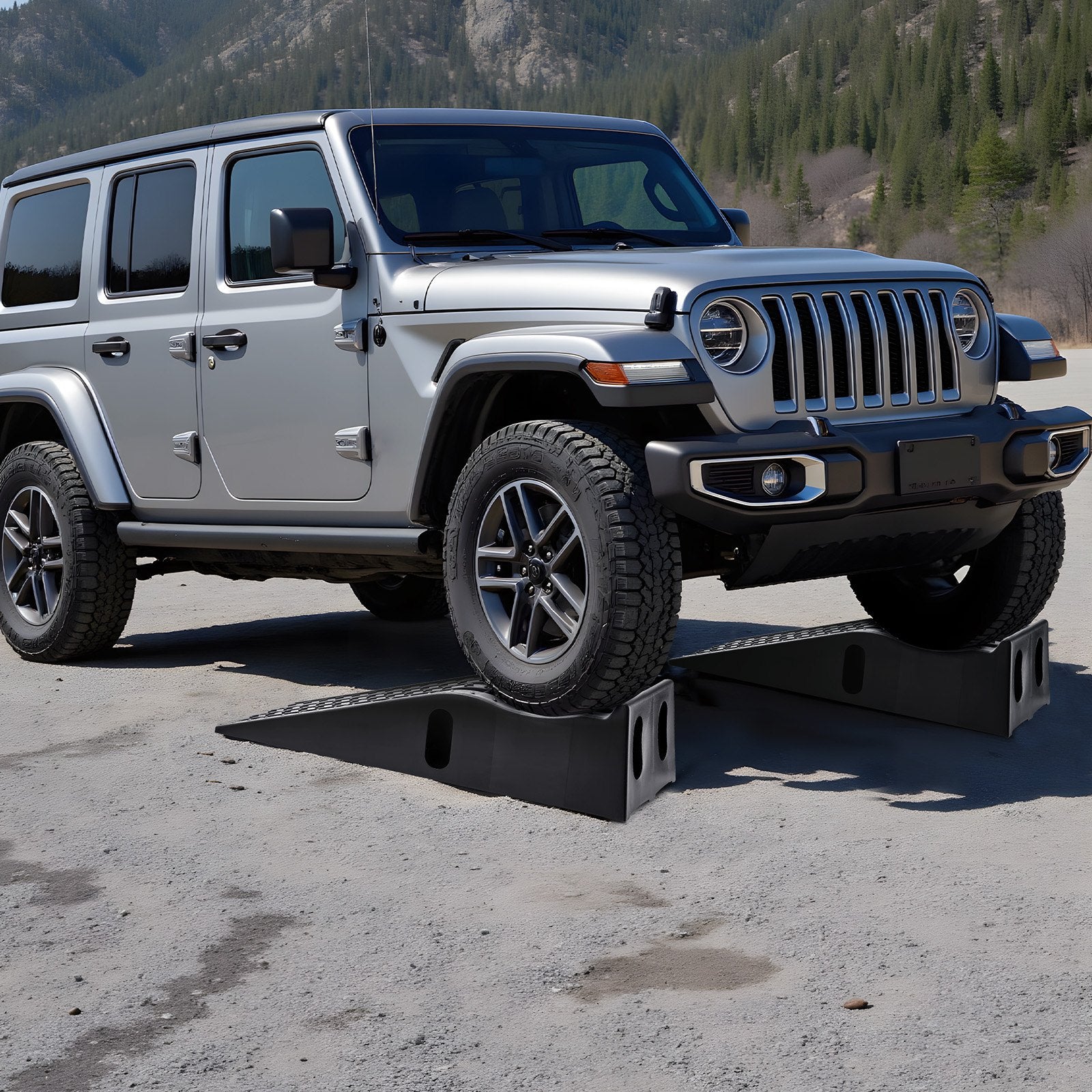 - High-Chassis Vehicles Fit: Designed with a 6.1 in lift and 17° incline, these car lift ramps are ideal for higher-chassis vehicles like mid-sized SUVs, trucks, and Jeeps. The elevated design provides ample space while avoiding undercarriage scraping