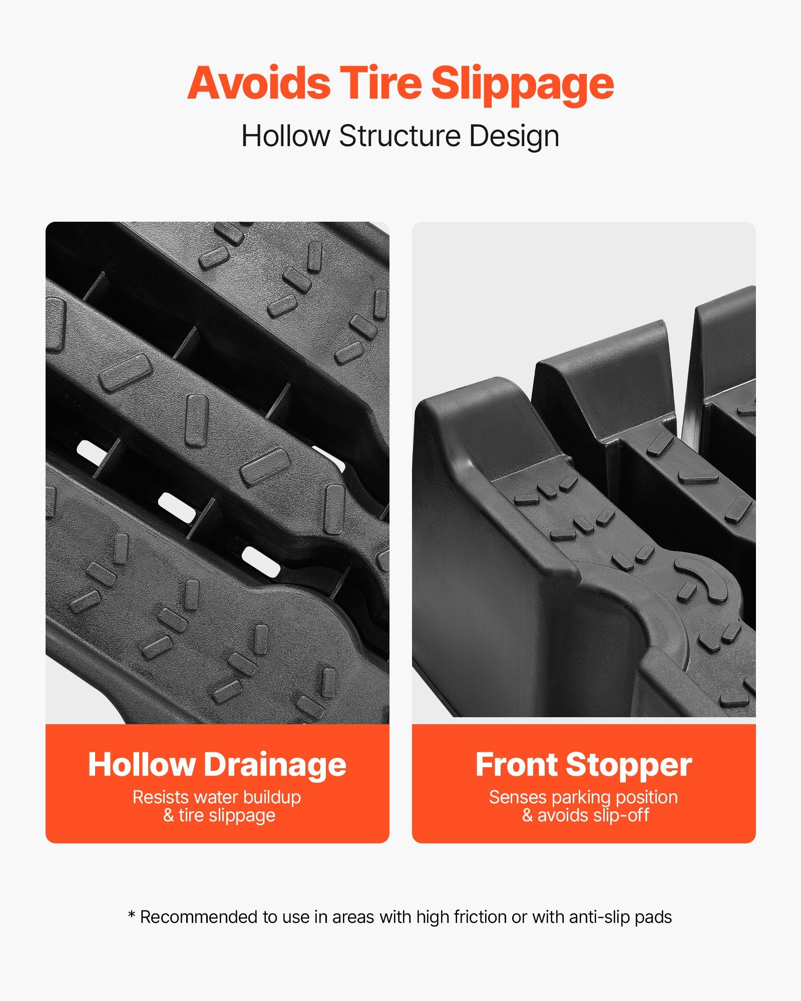 - Special Design: Our oil change ramps feature a honeycombed surface to increase friction and drainage, which reduces dampness buildup and tire slippage. The curved design fits tires securely, while the grooved tops enable stackable storage to ease transport