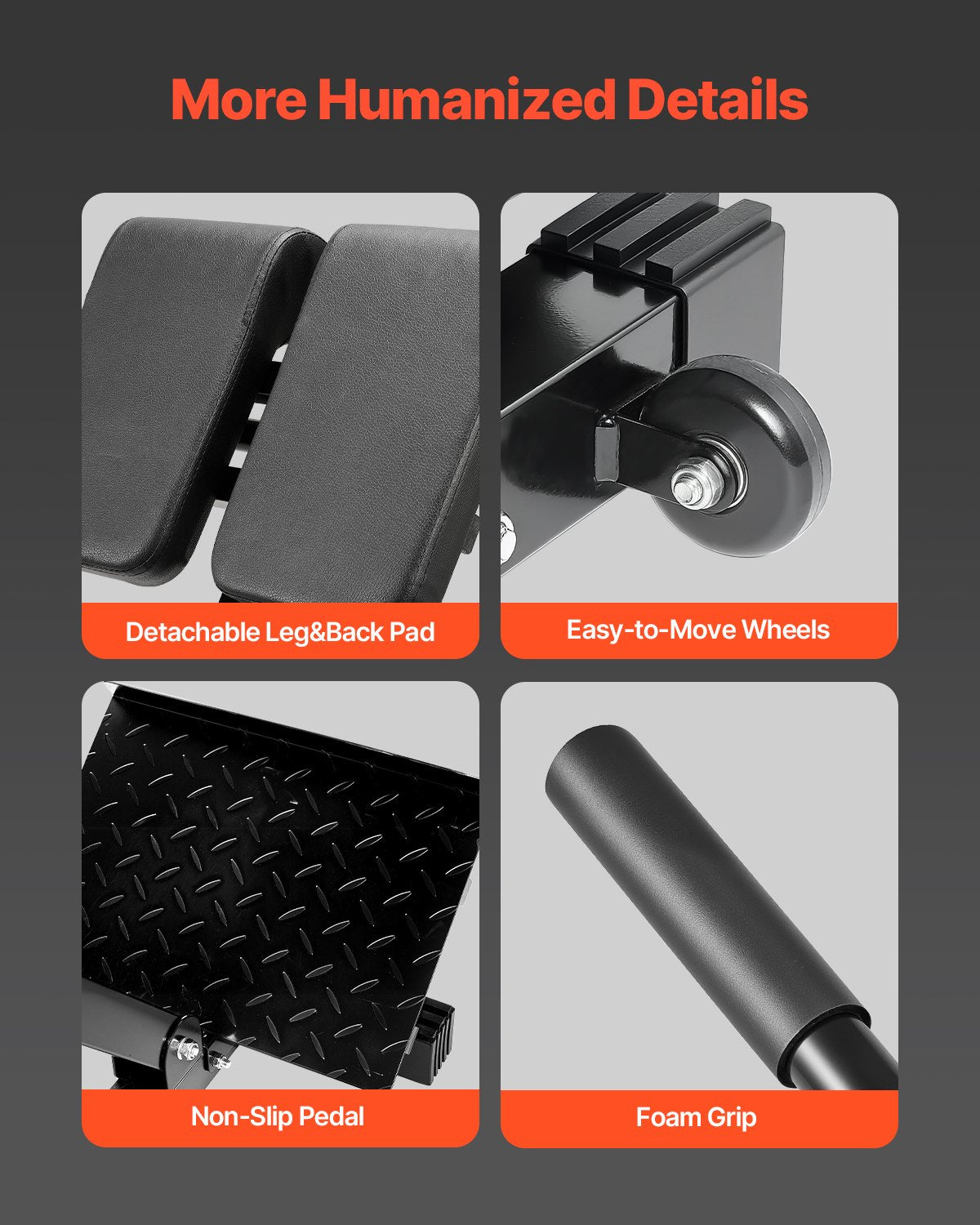 - More Humanized Details: The detachable back pad allows for customizable workouts, enabling you to focus on specific muscle groups. The mobility of the chair enhances its versatility, making it a practical addition to any fitness setting