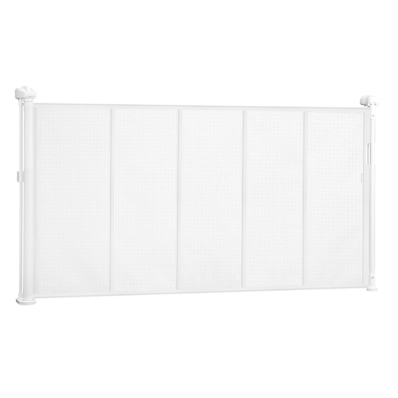 - Retractable Design: This white mesh gate can extend up to 55 inches wide, and the mesh is 34 inches tall, allowing you to adjust the opening size as needed. The retractable design makes it easy to store when not in use, taking up minimal space and keeping your home tidy and spacious