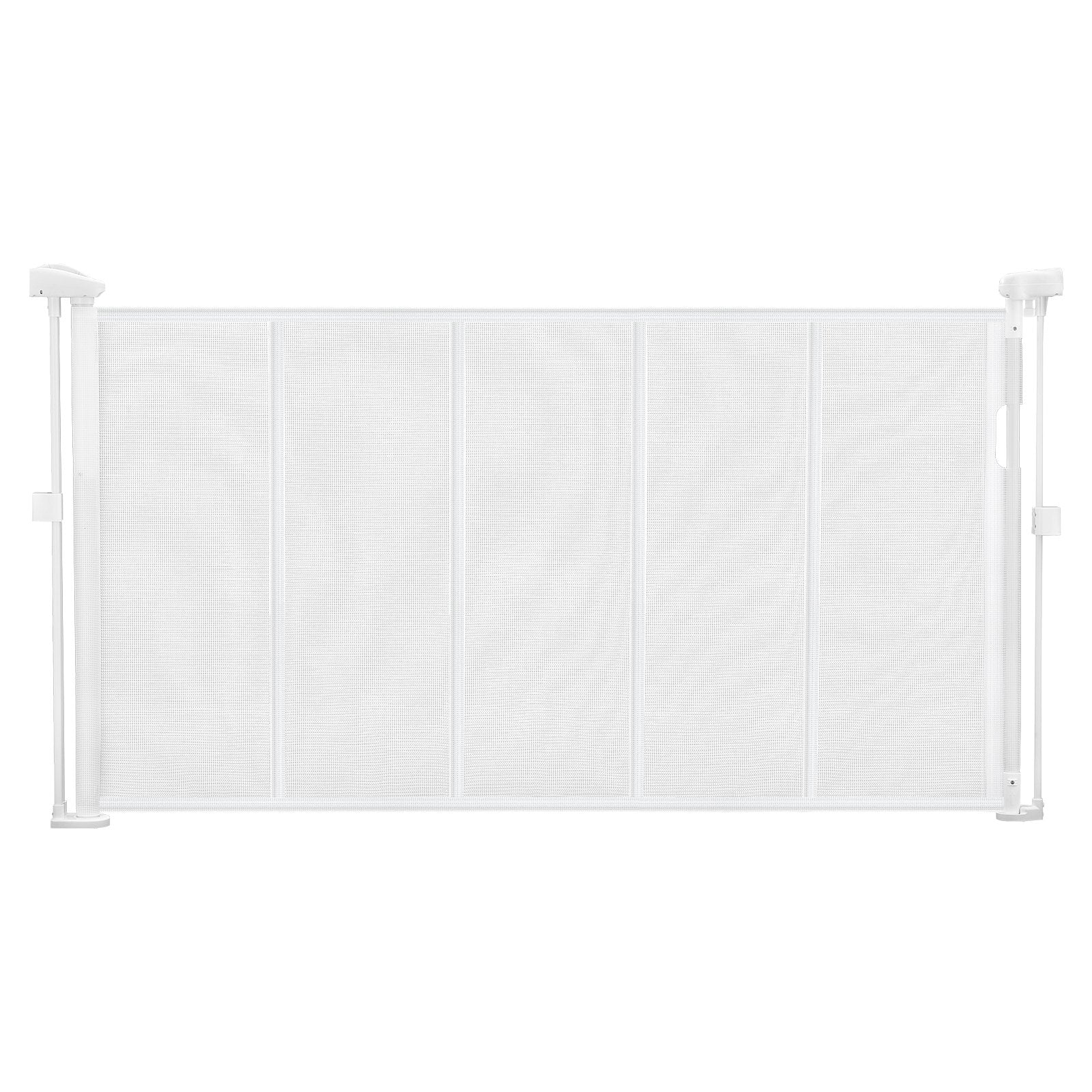 Retractable Baby Gate, 870 mm Tall, Extends up to 1400 mm Wide, Retractable Gate for Kids or Pets, Mesh Material, Easy to Install for Indoor Stairs, Doorways, Hallways, Playrooms, White