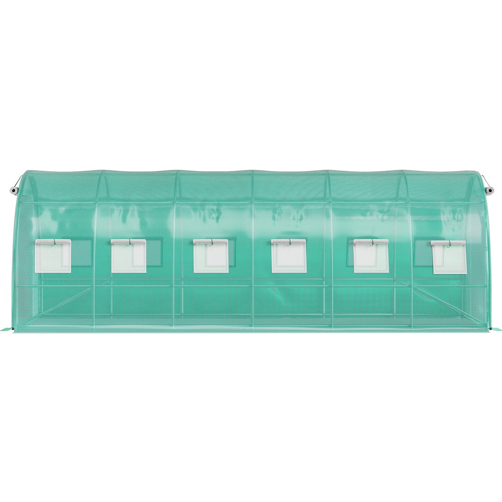 Walk-in Tunnel Greenhouse, 609.6 x 304.8 x 213.4 cm Portable Plant Hot House w/ Galvanized Steel Hoops, 3 Top Beams, 4 Diagonal Poles, 2 Zippered Doors & 12 Roll-up Windows, Green