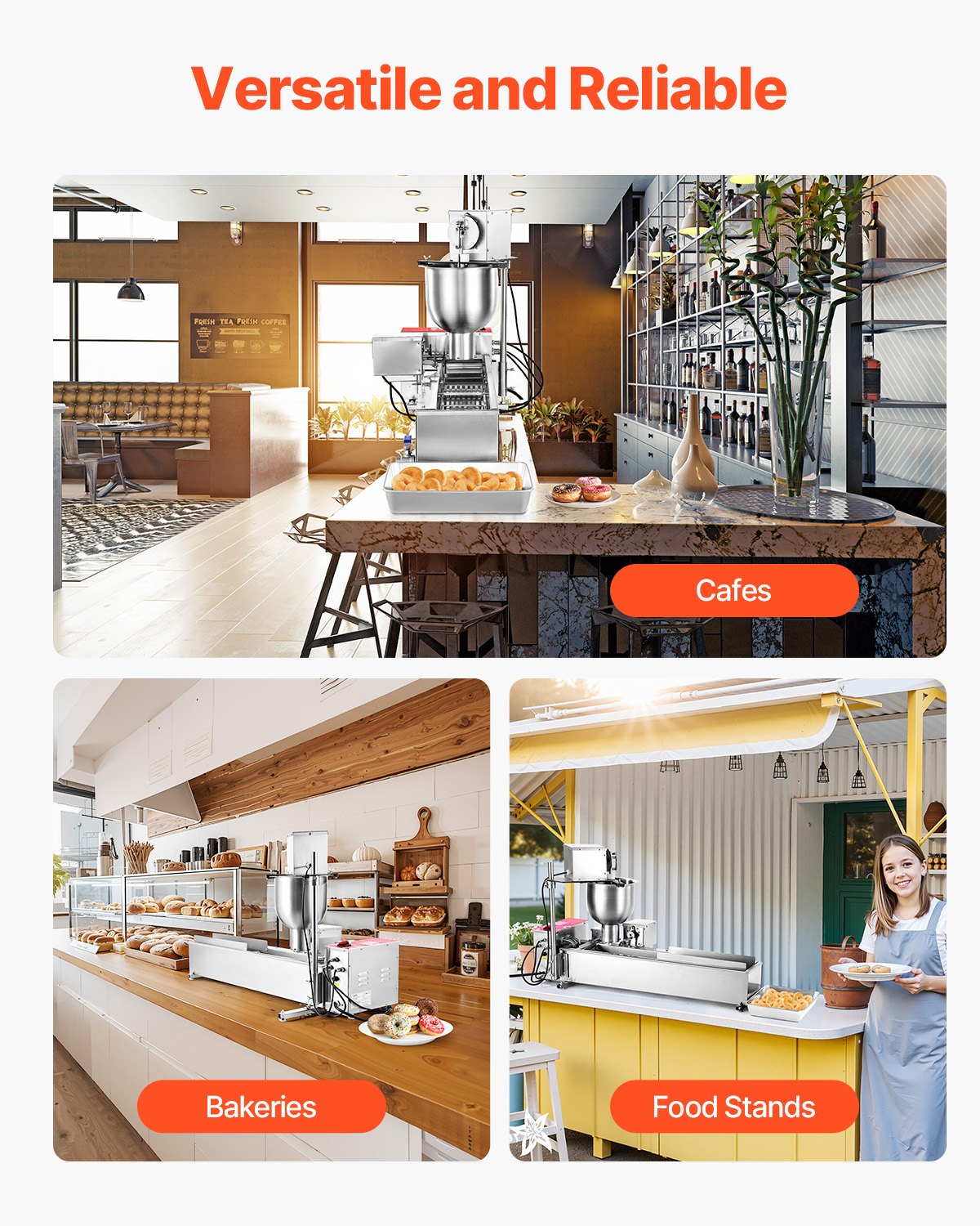 - Versatile Usage: Whether you're running a café, a bakery, or a food stand, this stainless steel donut maker is designed to meet the demands of any business, helping you deliver fresh, delicious donuts quickly and efficiently