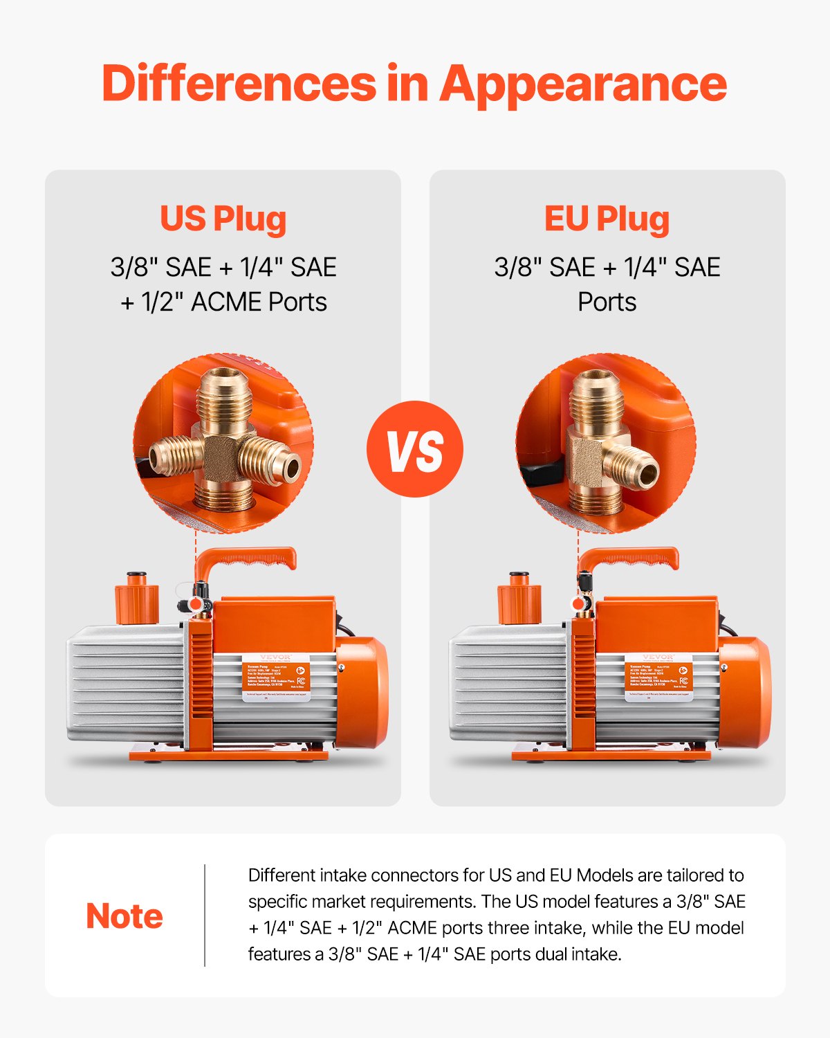 - Exceptional Compatibility: Designed with 1/4" SAE and 3/8" SAE ports, this HVAC vacuum pump works seamlessly with a variety of systems, including automotive and smaller-tonnage R22, R134a, and R410a refrigerant systems. Whether you're servicing cars or home HVAC units, the job gets done with ease.