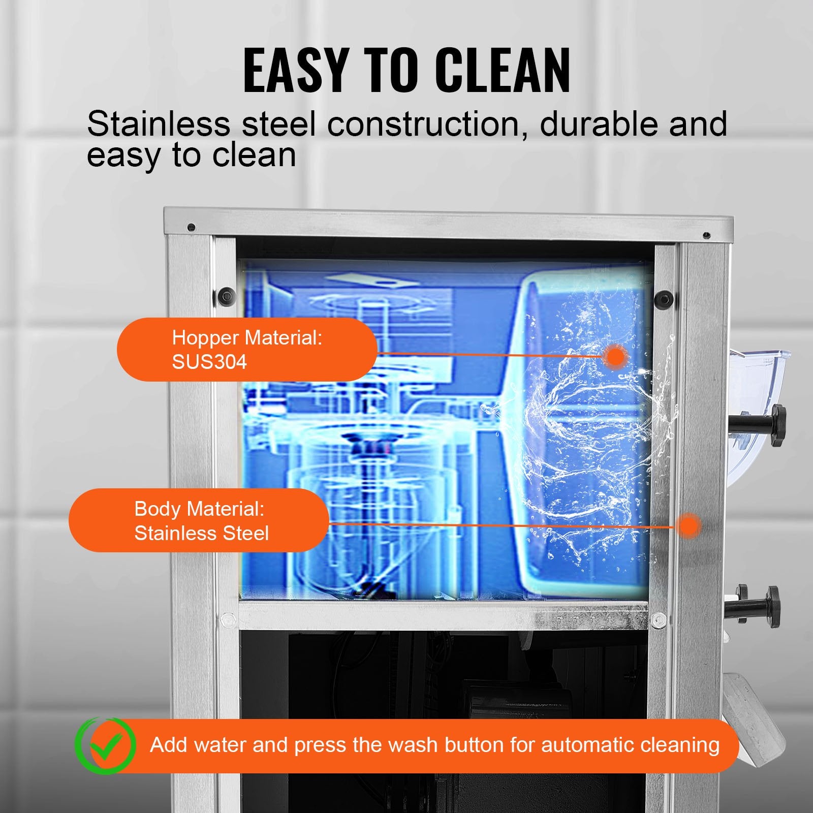 - Solid and Durable: Constructed with high-quality SUS201 stainless steel and featuring a food-grade SUS304 stainless steel refrigeration cylinder, the hard serve commercial ice cream maker is sturdy, rust-resistant, and easy to clean, ensuring longevity and food safety.