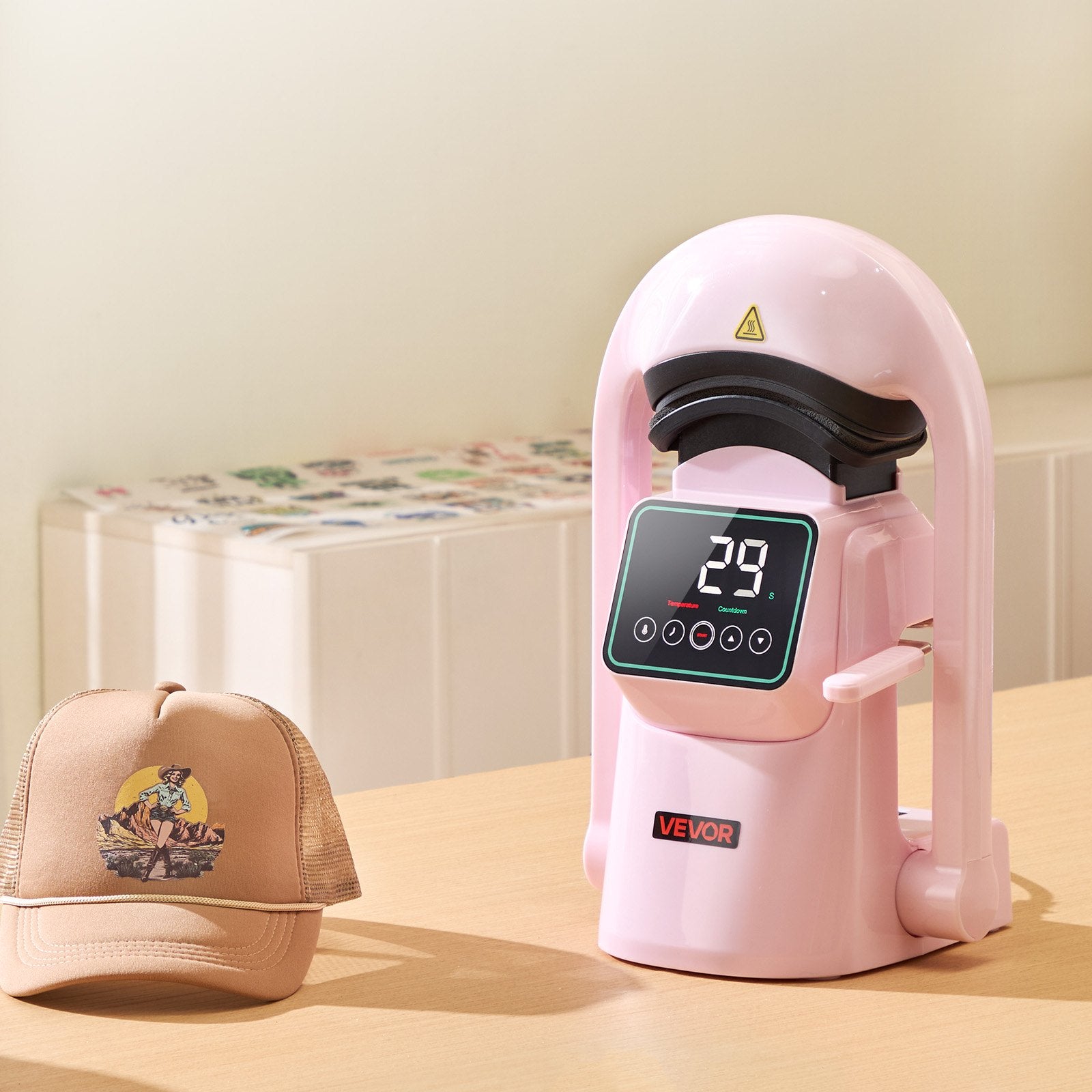 Auto Hat Heat Press Machine, with 2pcs Interchangeable Platens, Automatic Open and Release, Touchscreen for Precise Time and Temperature Control, Heat Transfer Printing for Caps, Hats, Pink
