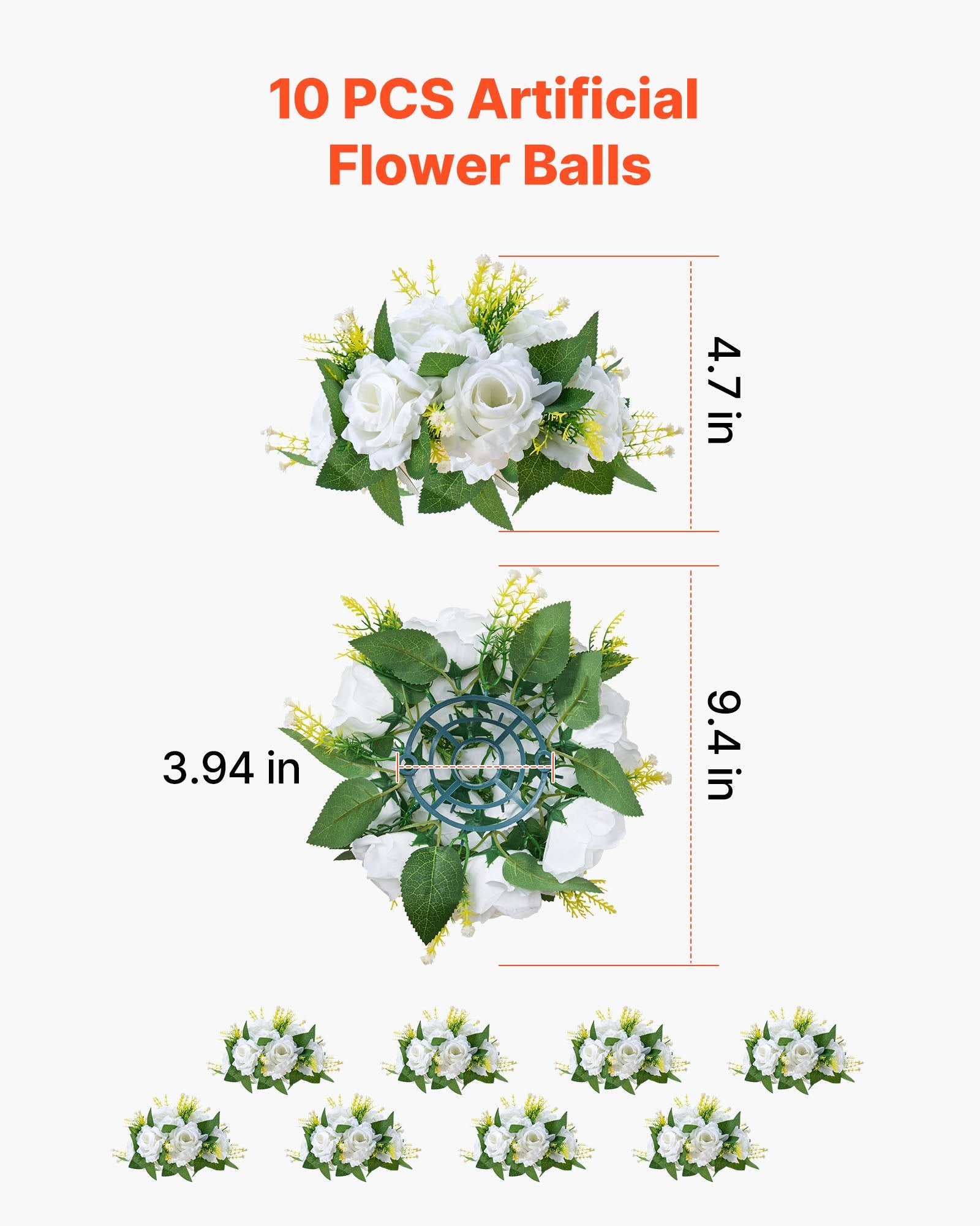 Flower Balls Arrangement Bouquet 10 PCS, 240 mm Diameter Artificial Flower Balls Wedding Rose Centerpieces, Faux Flowers Arrangements for Wedding Centerpiece Home Table Decorations, White