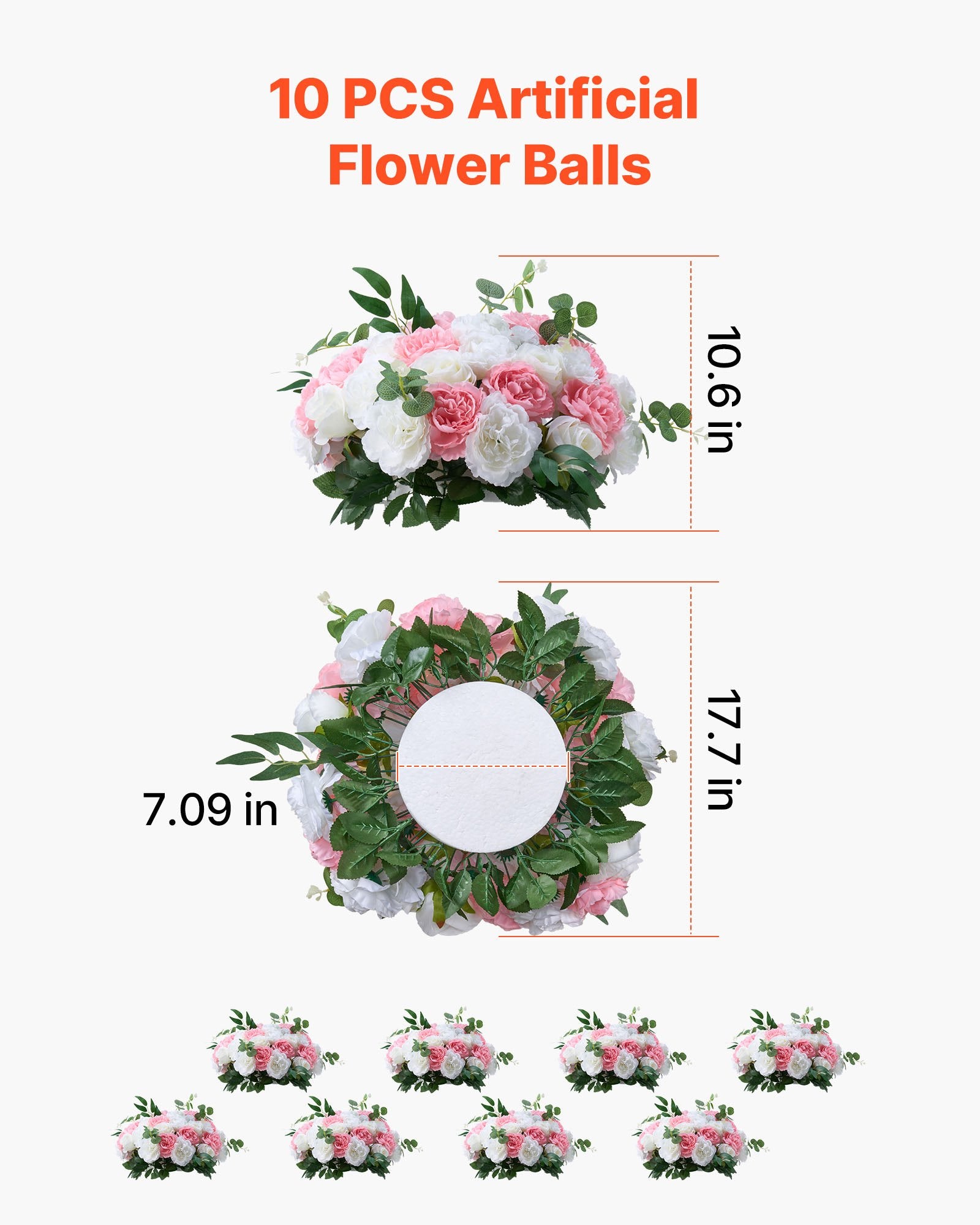 Flower Ball Arrangement Bouquet 10 PCS, 450 mm Diameter Artificial Flower Balls Wedding Table Centerpieces, Rose Arrangements for Wedding Centerpiece Home Decorations, Pink and White Roses