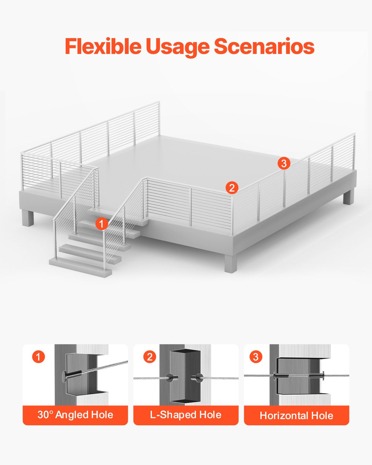 - Vielseitiger Schutz: Unsere Kabelgeländerpfosten eignen sich sowohl für den Innen- als auch für den Außenbereich, einschließlich Terrassen, Treppen, Veranden, Zäune, Patios, Balkone, Gärten, Wohnhäuser, Bürogebäude, Hotels, Garagen und vieles mehr.