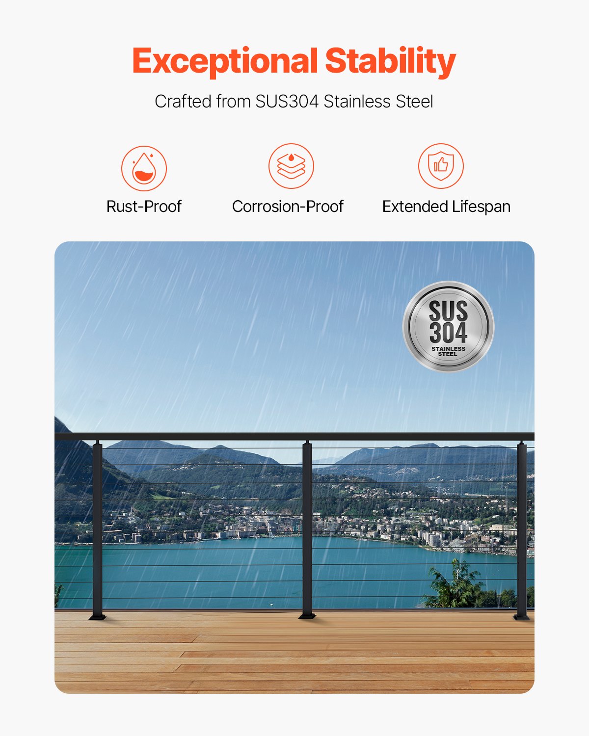 - Robust und langlebig: Unser Kabelgeländerpfosten besteht aus hochwertigem Edelstahl SUS304 und bietet hervorragenden Rost- und Korrosionsschutz für eine lange Lebensdauer. Er ist jedoch nicht für Küstenregionen geeignet.