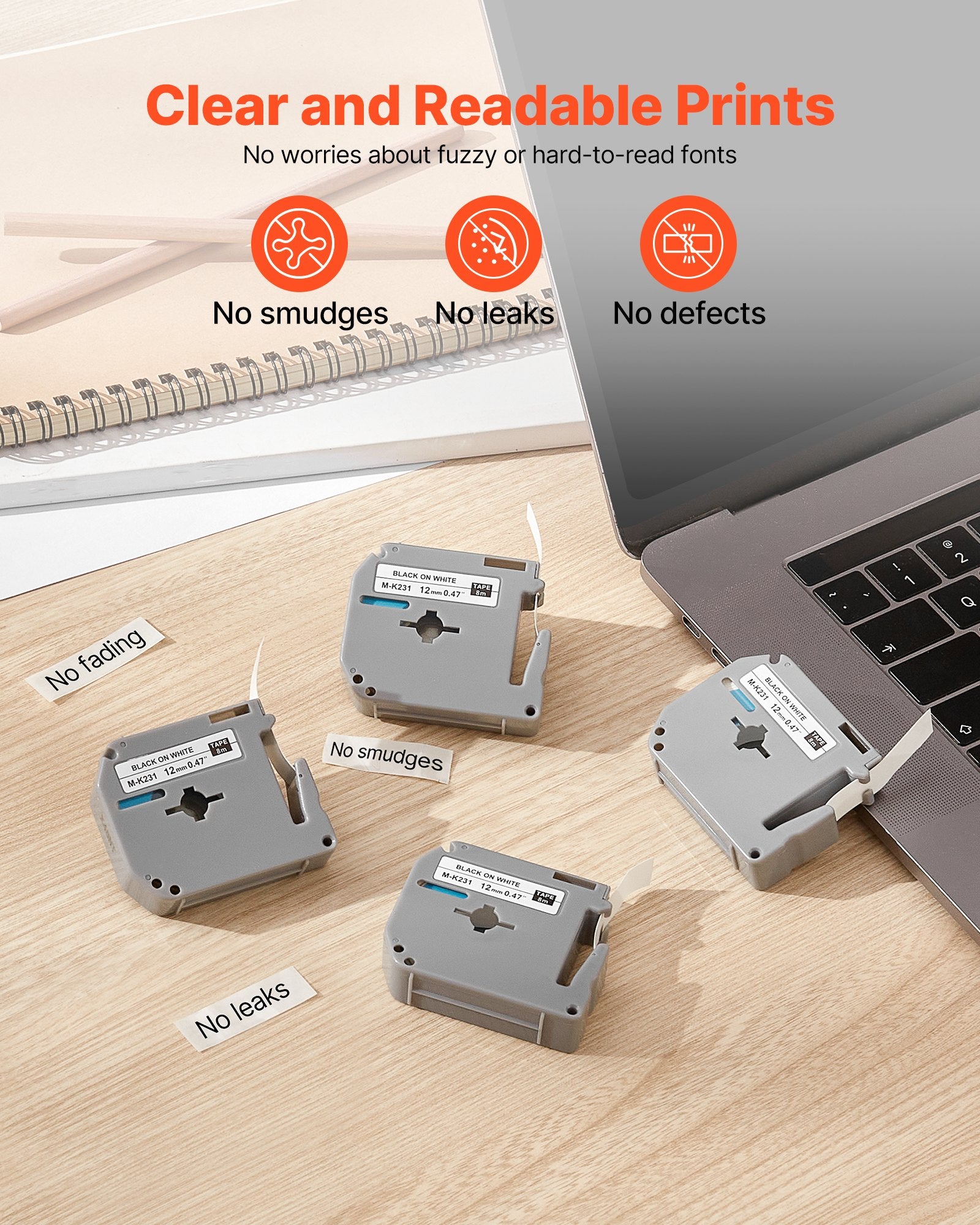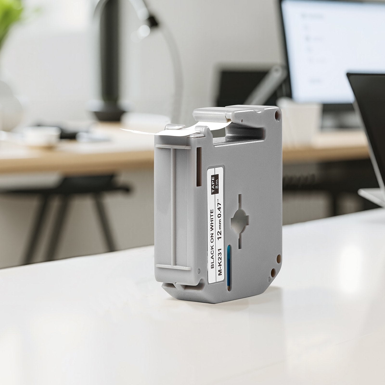- Breite Kompatibilität: Dieses schwarz-weiße Etikettenband ist mit dem Brother M-K231 Farbband kompatibel und erfüllt mühelos all Ihre Druckanforderungen. Jede Rolle ist 12 mm breit und 8 m lang und passt zu Brother-Geräten wie PT-M95, PT-90, PT-70BM, PT-85, PT-80 und weiteren. Es ist das ideale Etikettenband für alle Ihre Büro- und Haushaltsorganisationsbedürfnisse. HINWEIS: Zum einfachen Abziehen des Etiketts: Drücken Sie einfach das Trägerpapier zusammen und reißen Sie es in der Mitte auf.