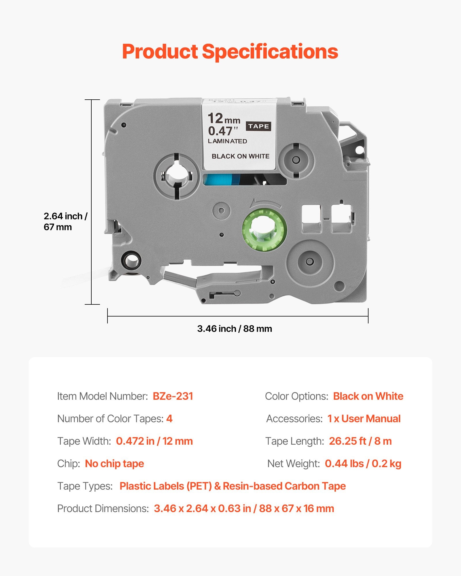- Breite Kompatibilität: Dieses schwarz-weiße Etikettenband ist mit dem Brother TZe-231 Farbband kompatibel und erfüllt mühelos all Ihre Druckanforderungen. Jede Rolle ist 12 mm breit und 8 m lang und passt für Brother P-Touch-Geräte wie PT-1230PC, PT-1280, PT-D200, PT-P400 und weitere. Es ist das ideale Etikettenband für alle Ihre Büro- und Haushaltsorganisationsbedürfnisse. HINWEIS: Zum einfachen Abziehen des Etiketts: Drücken Sie einfach das Trägerpapier zusammen und reißen Sie es in der Mitte auf.