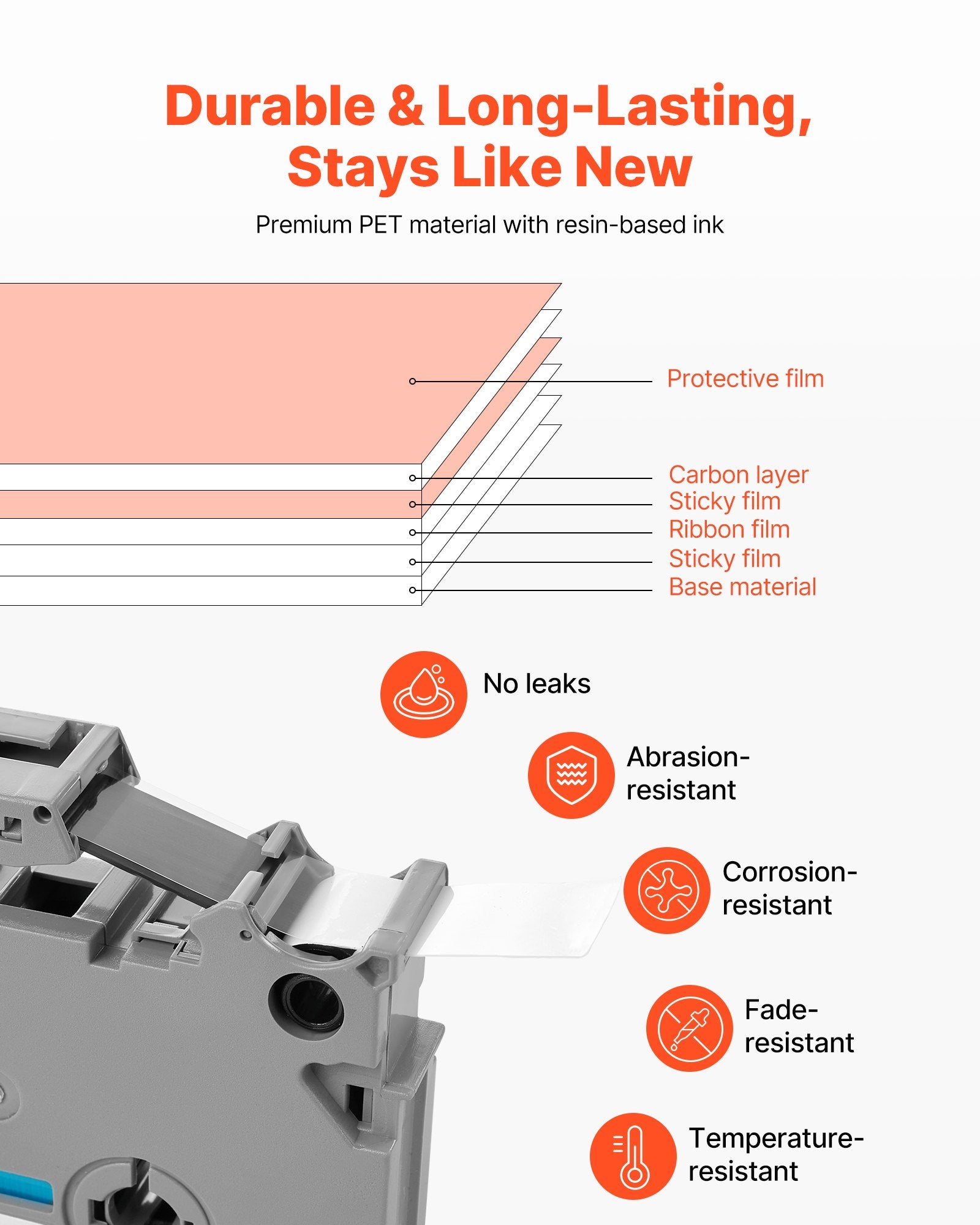 - Langlebig und robust: Für die Ewigkeit gemacht! Hergestellt aus hochwertigem PET-Material und Tinte auf Harzbasis, ist dieses Etikettenband wasserfest, kratzfest und farbecht. Es ist robust genug für den täglichen Gebrauch und sorgt dafür, dass Ihre Etiketten immer frisch aussehen.