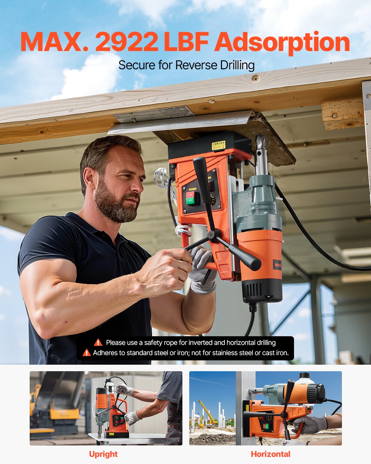 - Breites Anwendungsspektrum: Diese vielseitige Magnetbohrmaschine spielt eine wichtige Rolle bei Heimwerkerarbeiten, Geräteinstallationen, in der Industrie- und Stahlverarbeitung, im Schiff- und Brückenbau, im Eisenbahnbau, im Windkraft- und Kraftwerksbau und vielen anderen Bereichen. Hinweis: Für optimale Ergebnisse verwenden Sie bitte eine Stahlplattenstärke von mindestens 10 mm. Nicht geeignet für Edelstahl oder Gusseisen. Bitte verwenden Sie beim Bohren über Kopf und horizontal ein Sicherungsseil.