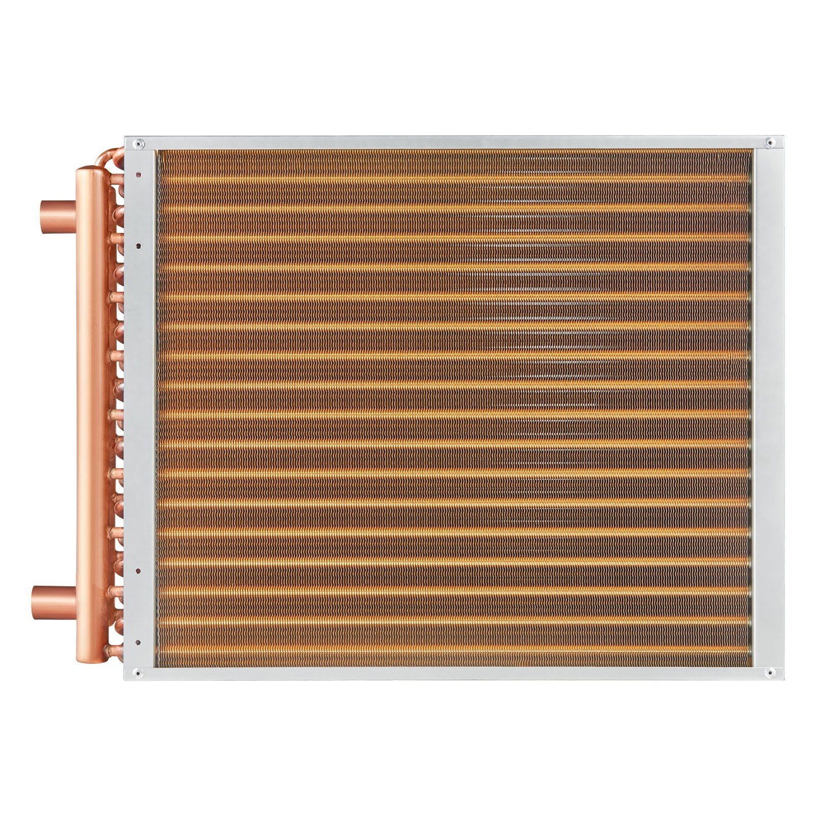 - Effiziente Wärmeübertragung: Der Wärmetauscher erzeugt bis zu 160 kBtu pro Stunde mit 12 Aluminiumlamellen pro Zoll und 3 Reihen nahtloser 3/8"-Kupferrohre. Die Kupferrohre mit Gewinde vergrößern die Kontaktfläche und die Kapazität des Wärmeträgermediums und verbessern so die Leistung des Wärmetauschers deutlich.