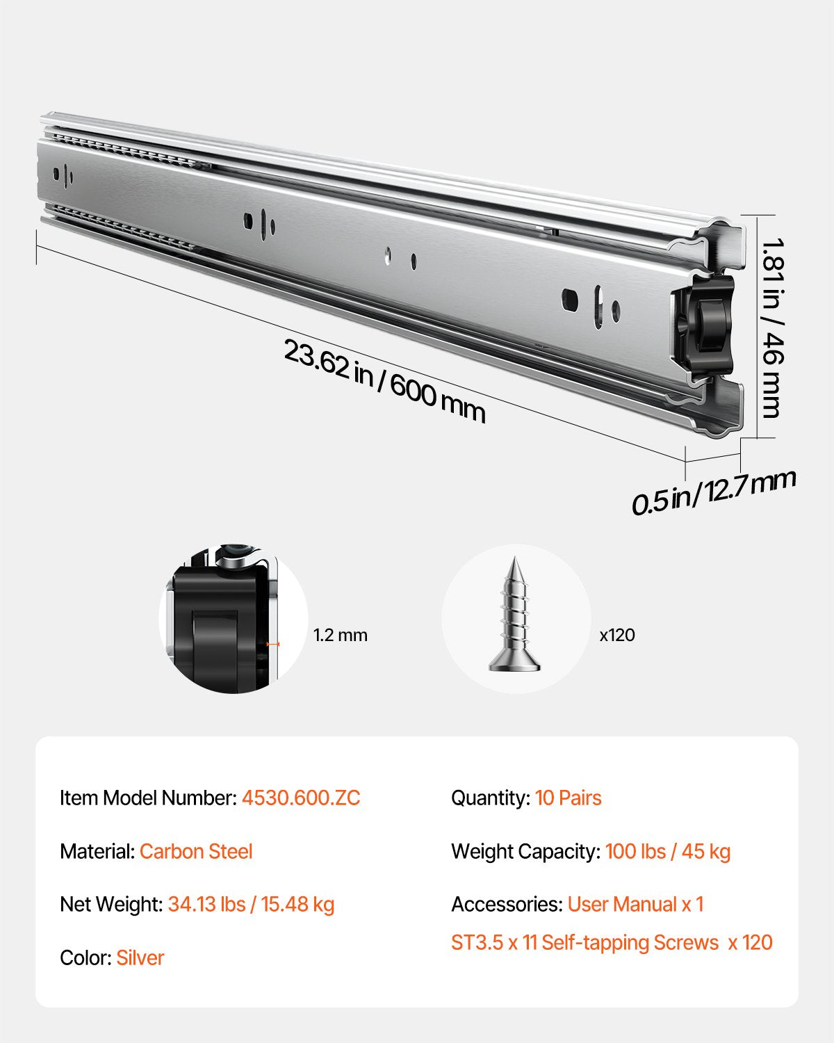 - 4 Universalgrößen: Erhältlich in den Größen 18", 20", 22" und 24", sind diese Schubladenschienen mit einer Vielzahl gängiger Marken kompatibel und bieten Flexibilität für einen einfachen Austausch.