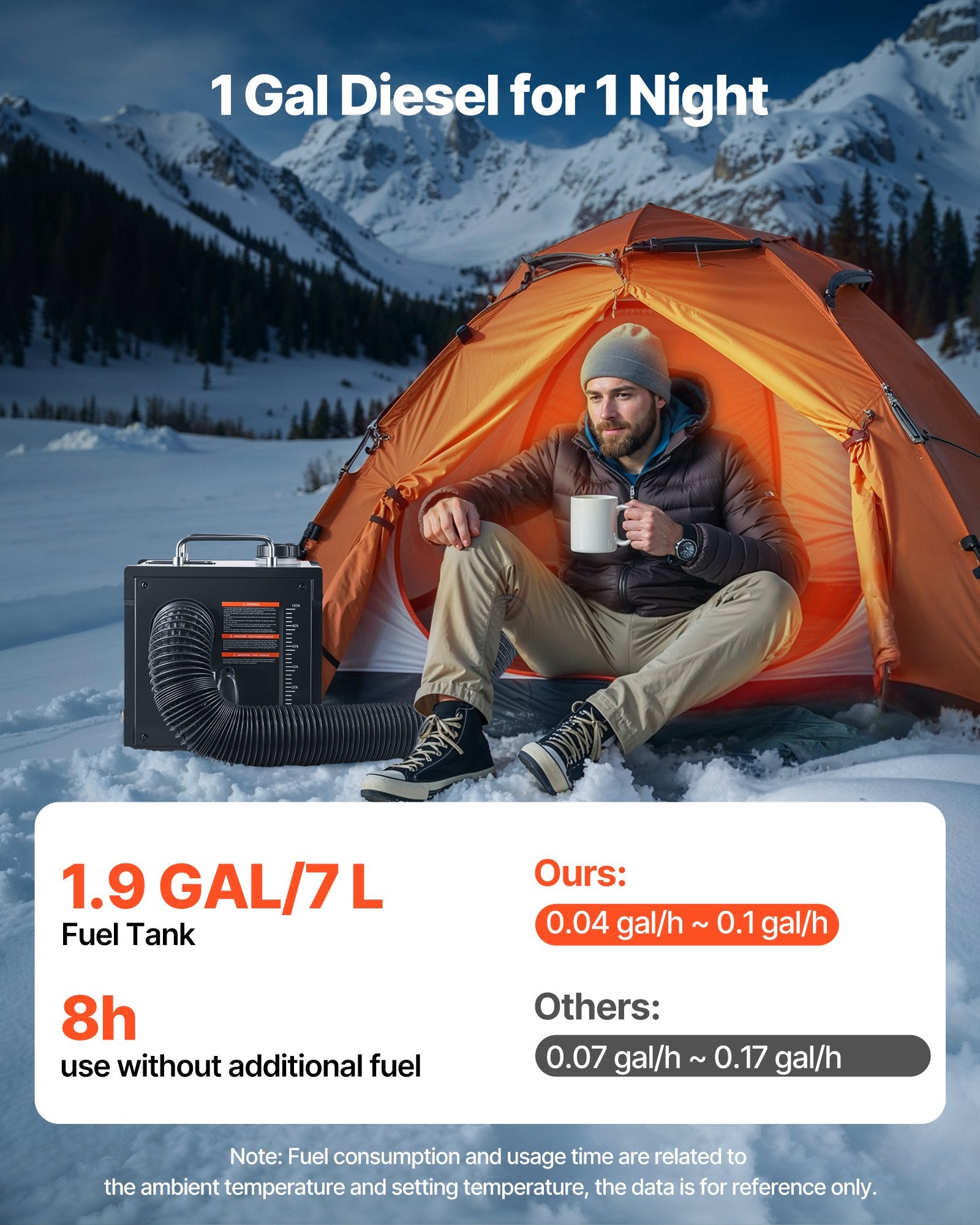 - Kraftstoffsparend: Diese tragbare Dieselheizung verfügt über eine leise, energiesparende Kraftstoffpumpe und verbraucht nur 0,04–0,1 Gallonen pro Stunde bei einem Wirkungsgrad von über 90 %. Der 1,9-Gallonen-Kraftstofftank ermöglicht Heizbetrieb die ganze Nacht ohne Nachfüllen und reduziert so Kraftstoffverbrauch und Energieverschwendung.