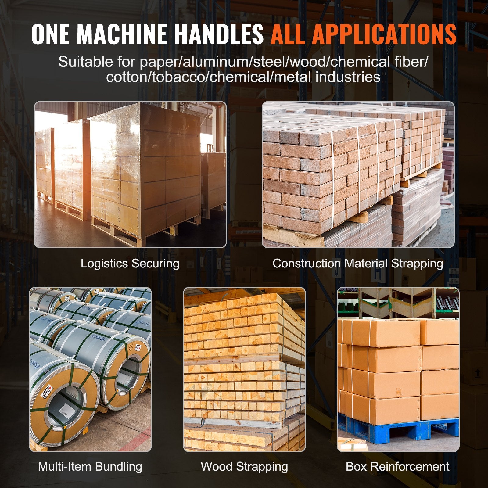 - Ideal für diverse Branchen: Ob Papier, Aluminium, Stahl, Holz, Chemiefasern, Baumwolle, Tabak, Chemie oder Metallprodukte – unser Umreifungsgerät ist die perfekte Lösung. Es bewältigt alles von Holzbrettern und Marmor bis hin zu Ziegeln und Stahl und steigert so Ihre Effizienz und Produktqualität.
