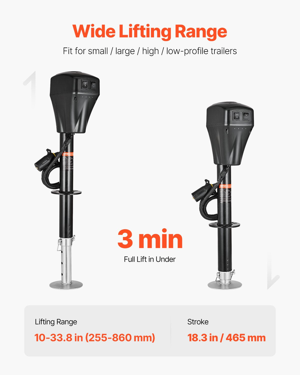 - Hohe Tragfähigkeit: Der elektrische Anhängerheber von VEVOR zeichnet sich durch eine beeindruckende Hubkraft von 5000 lbs und einen Hubbereich von 10 bis 33,8 Zoll aus.