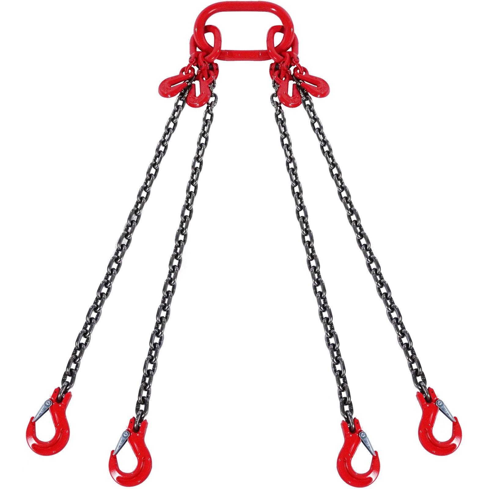 Kettengehänge, 6,35 mm x 1,52 m Hebeketten mit Haken, G80 Motorkettenzug, 3 Tonnen Hebeketten für Motorhebezeuge, Motorhebekette mit 4-Strang-Greifhaken und Verstellern