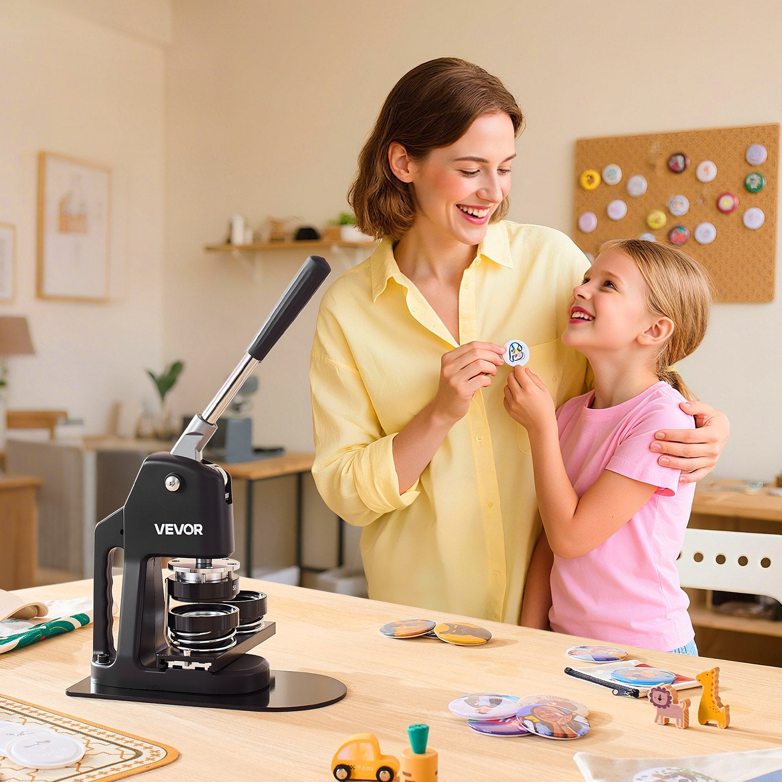 - Gestalten Sie personalisierte Geschenke: Entwerfen Sie individuelle Anstecker für jeden Anlass. Unsere Buttonmaschine eignet sich auch für Spiegel, Schlüsselanhänger, Flaschenöffner und Magnete – verwandeln Sie Ihre Kreativität in einzigartige, herzliche Erinnerungsstücke.