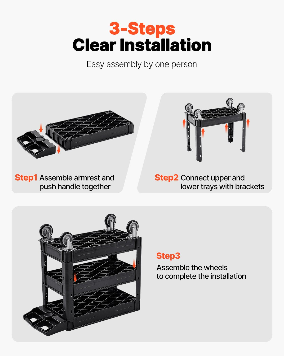 - Einfache Montage: Dieser Rollwagen lässt sich in nur 3 einfachen Schritten aufbauen. Eine detaillierte Anleitung liegt bei, und die Montage ist in wenigen Minuten erledigt. Maße der oberen Ablage: 80 x 43,5 x 10,5 cm; Maße der mittleren und unteren Ablage: 79,5 x 43,5 x 10,5 cm; Tragkraft pro Ablage: 83 kg; Maximale Tragkraft: 250 kg