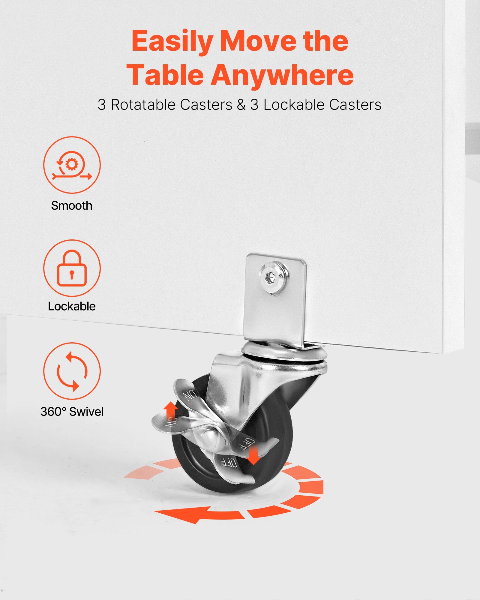 - Leicht zu bewegen: Ausgestattet mit 3 um 360° drehbaren und 3 feststellbaren Rollen lässt sich der Nähtisch mühelos an jeden beliebigen Ort verschieben. Die feststellbaren Rollen sorgen für Stabilität während der Benutzung, während die 360°-Drehung flexible Bewegungsfreiheit ermöglicht.