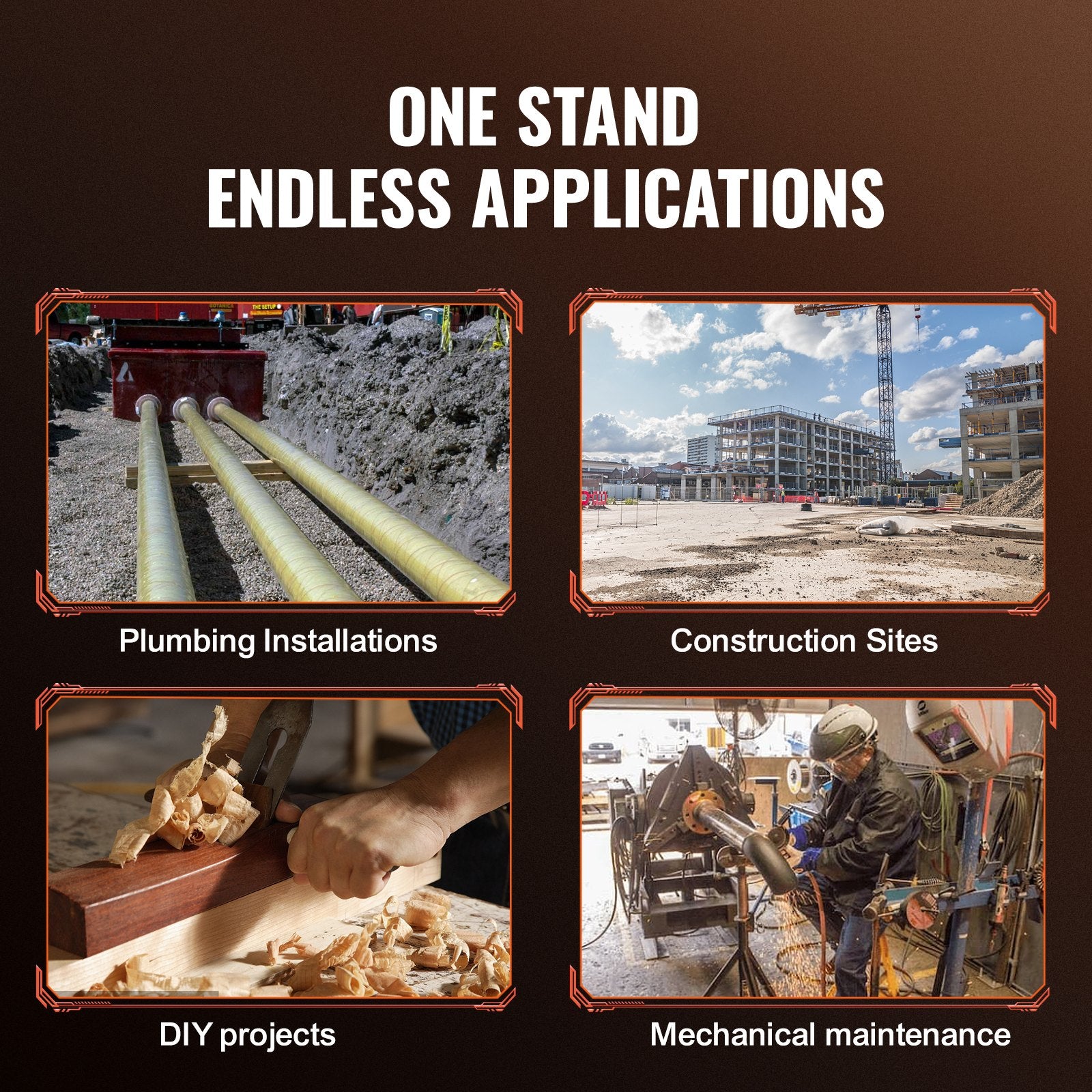 - Hochleistungs-V-Kopf: Der Rohrständer mit robustem V-Kopf eignet sich für Rohrdurchmesser von 1/8 bis 12 Zoll (0,32 bis 30,48 cm). Die Stahlkonstruktion ist besonders langlebig und rost- sowie korrosionsbeständig. Die maximale Traglast beträgt 1134 kg.