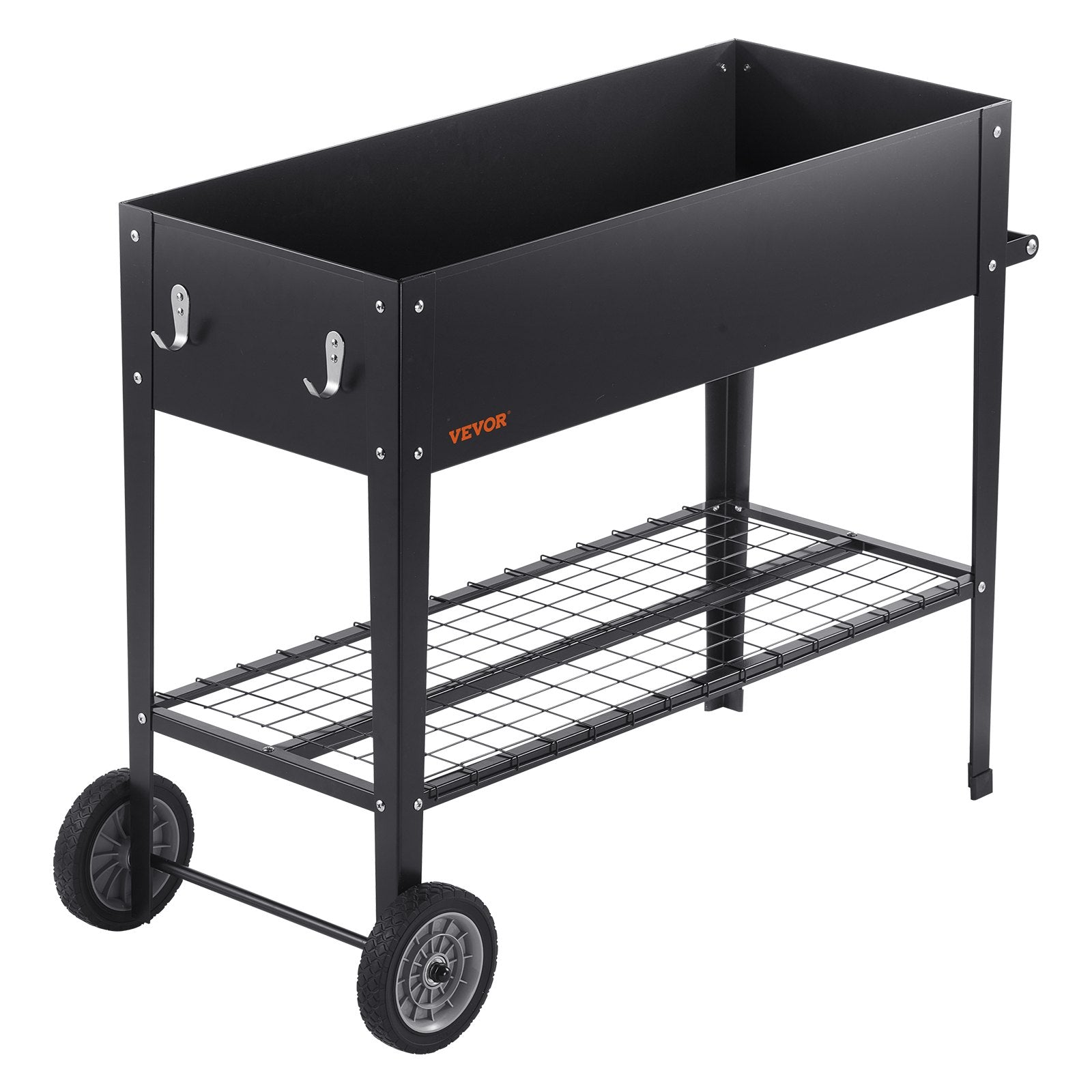 Hochbeet, 108 x 50 x 80 cm (42,5 x 19,5 x 31,5 Zoll), verzinkter Metall-Pflanzkasten, erhöhter Pflanzkasten mit Füßen, für den Anbau von Blumen, Gemüse und Kräutern im Garten, auf der Terrasse oder dem Balkon, schwarz