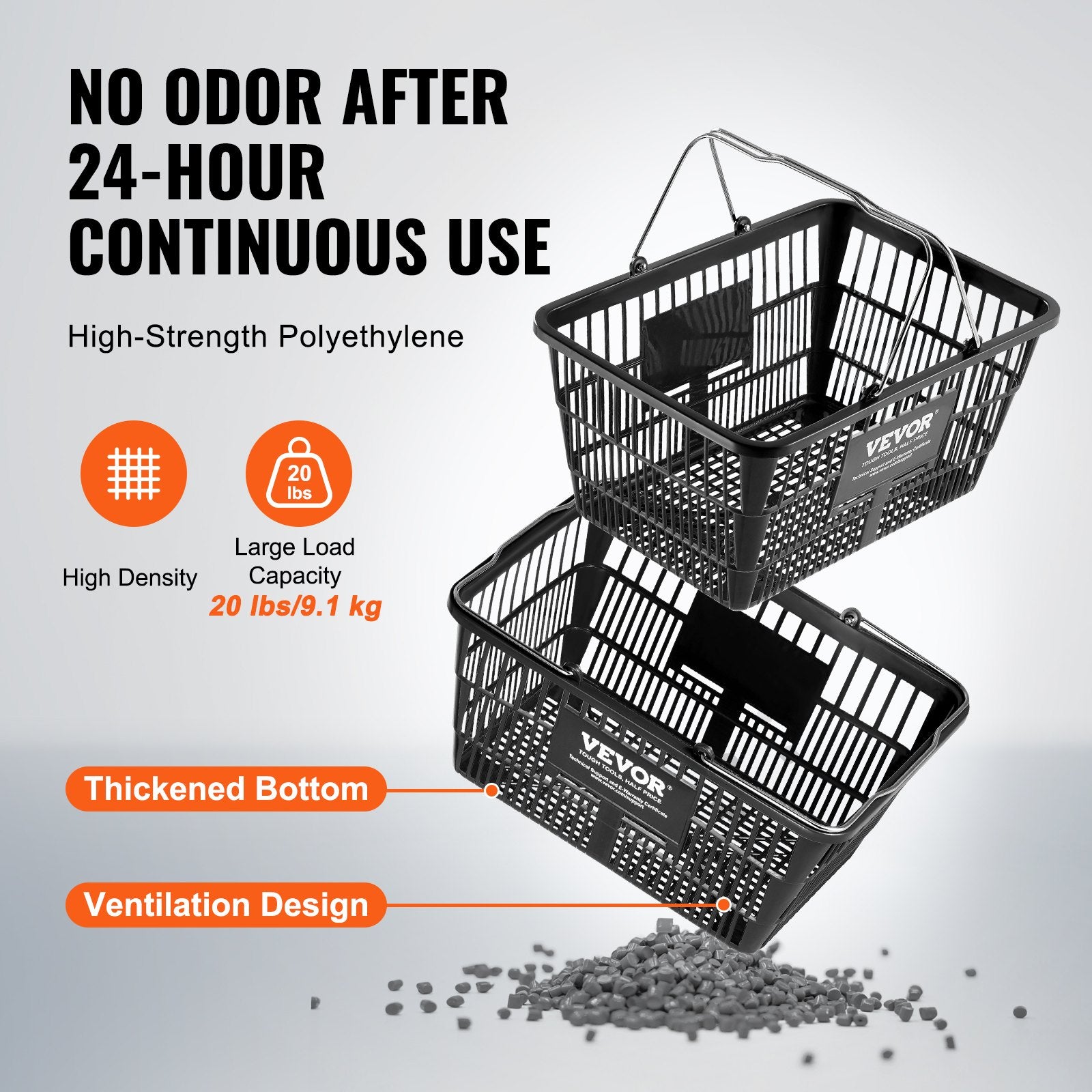 - Hochwertiges PE-Material: Dieser aus robustem und langlebigem PE-Material in Industriequalität gefertigte Einkaufskorb ist geruchsneutral. Dank der glatten Oberfläche, die Ihre Waren schützt, und des verstärkten Bodens für zusätzliche Sicherheit trägt er mühelos bis zu 9 kg.