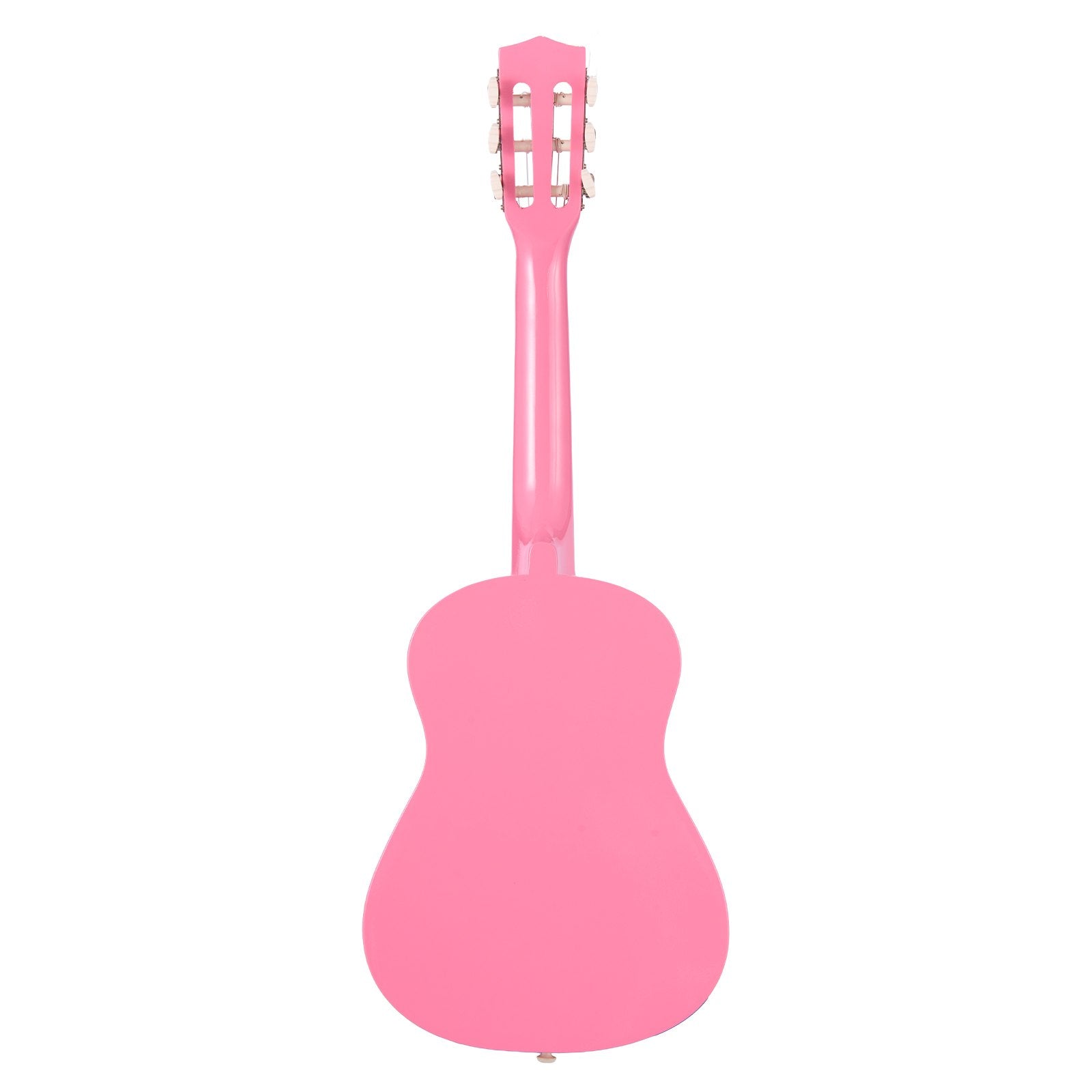 Klassische Gitarre, 780 mm, Holz, Starterset für Anfänger, mit Nylonsaiten, Gigbag, Gurt, Stimmgerät, Ersatzsaiten, Plektren, Kapodaster, Lindenholz, für Kinder, Mädchen, Jungen und Schüler, Rosa