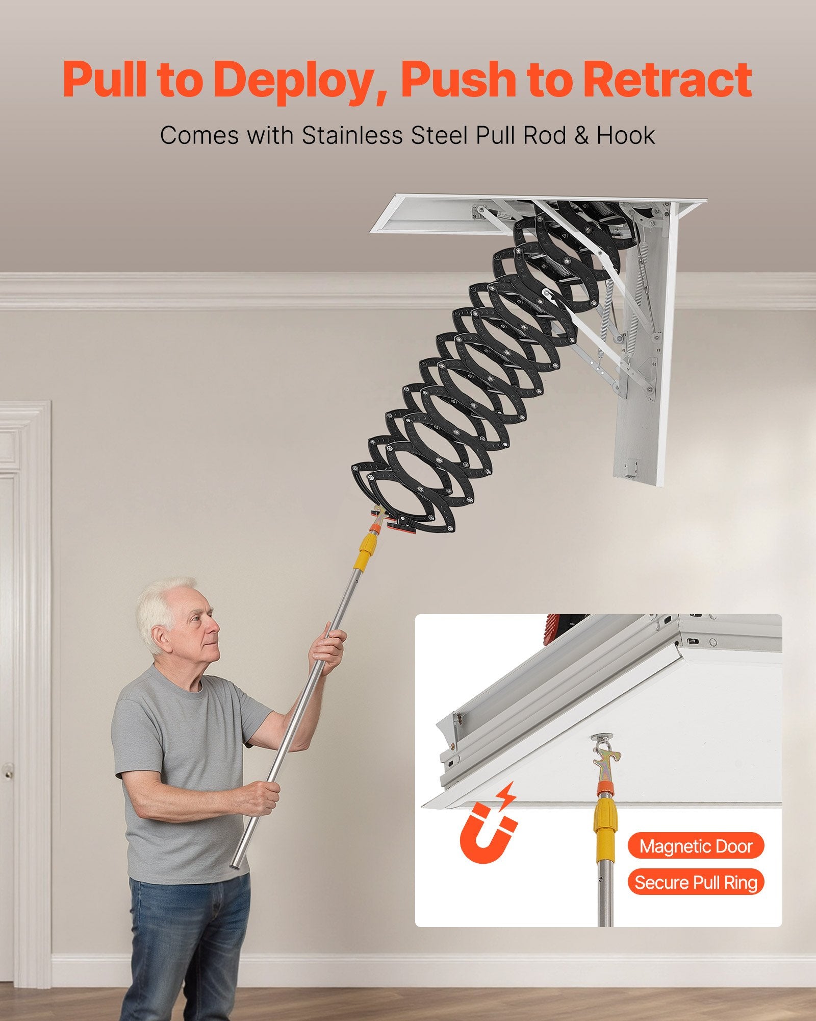 - Müheloses Öffnen und Schließen: Inklusive Zugstange und Ring – kein zusätzliches Werkzeug oder Höhenunterschied erforderlich. Einfach zum Öffnen ziehen, dann mit der Stange zurückklappen. Die magnetische Tür schließt sicher und passt zu modernen Deckenformen.