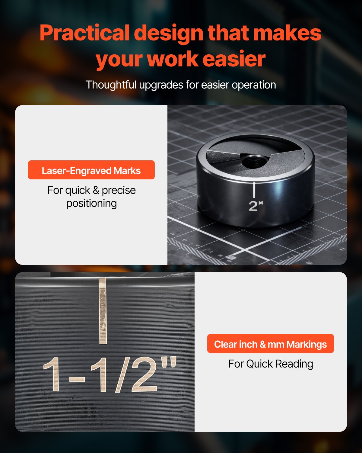 - Verbesserte Präzisionsfunktionen: Dank der Funktionserweiterung verfügt diese Metalllochzange über eine Laserskala mit zwei Zoll-Millimeter-Einheiten. So lassen sich präzise Positionen schnell und einfach per Blick fixieren, während die Messwerte klar und gut lesbar bleiben – für effizienteres Lochen.