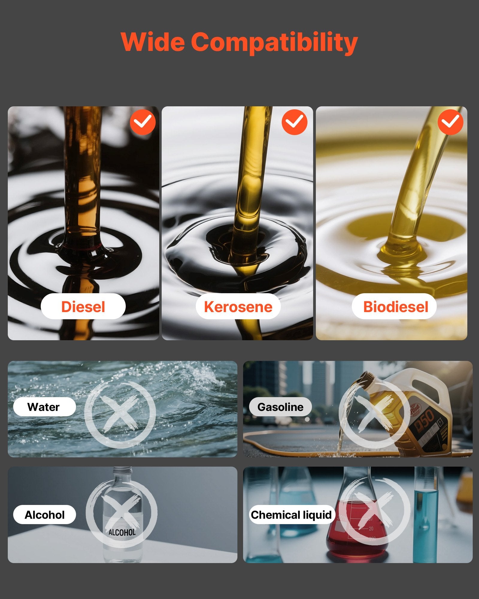 - Breites Spektrum an Diesel-Kompatibilität: Geeignet für Diesel, Kerosin und Biodiesel. Diese Dieselkraftstoff-Transferpumpe unterstützt diverse dieselbetriebene Geräte wie Lkw, Bagger, Traktoren, Landmaschinen, Generatoren und mehr (Nicht für Benzin geeignet).
