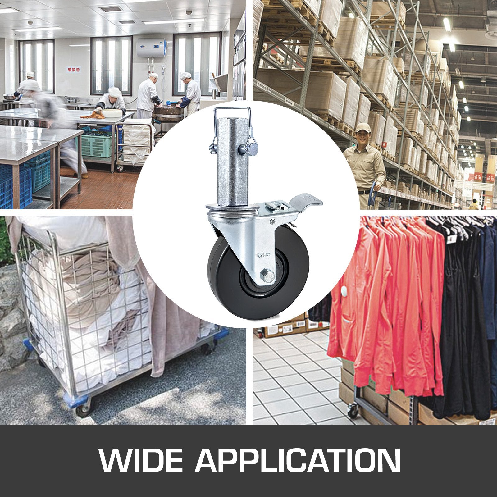 4er-Pack 12,7 cm (5 Zoll) Schwerlast-Gerüstlenkrollen aus Gummi mit doppelter Feststellbremse, 3,2 cm (1,25 Zoll) Vierkantschaft, Tragkraft 199,6 kg (440 lbs) pro Rolle